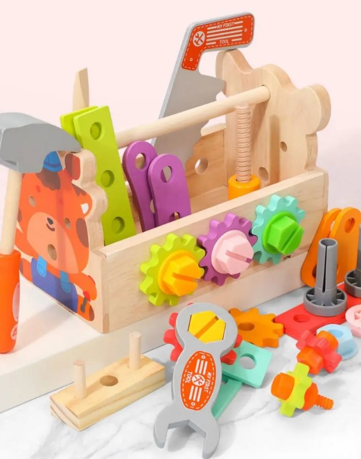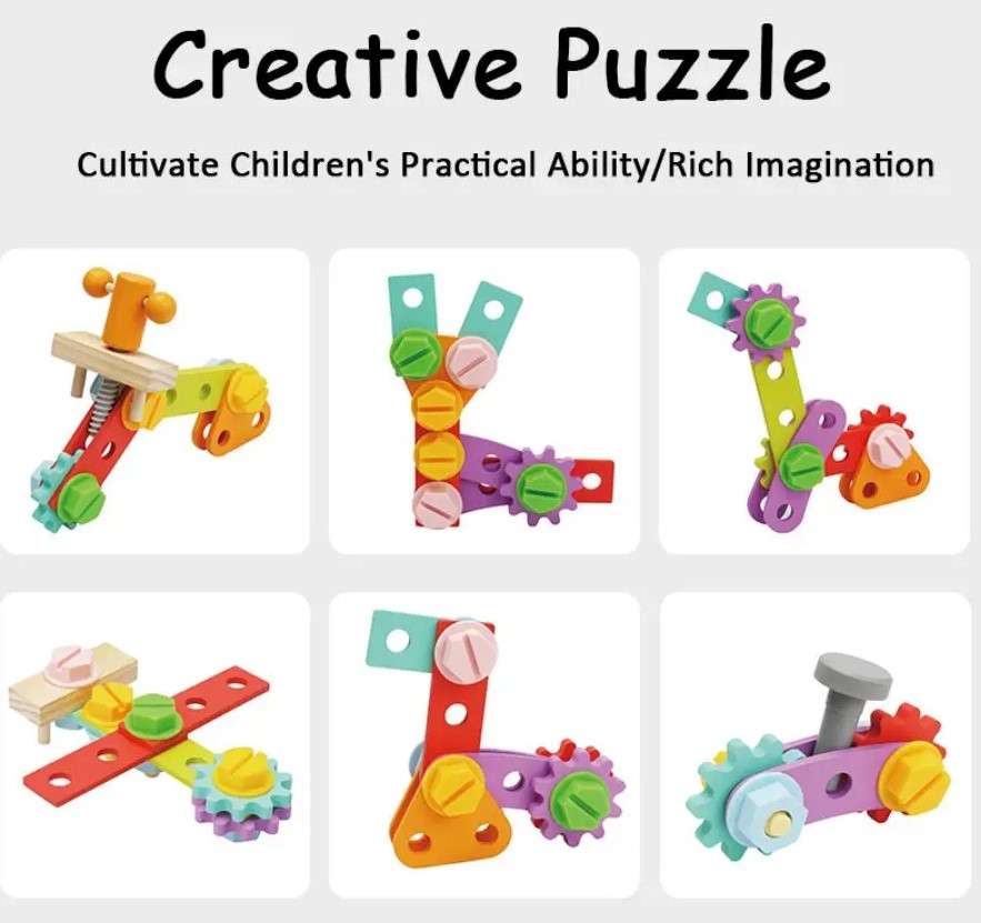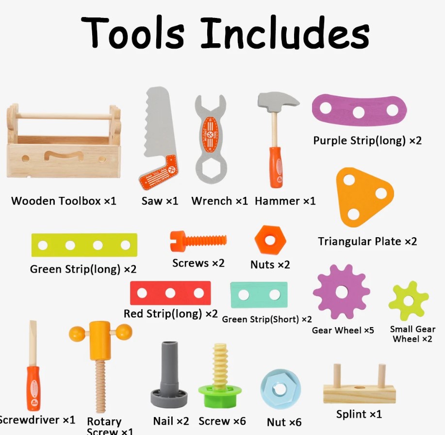 Copiii pot folosi piesele pentru a înșuruba, a deșuruba, a bate cu ciocanul sau a construi mici structuri, dezvoltându-și astfel dexteritatea și imaginația.