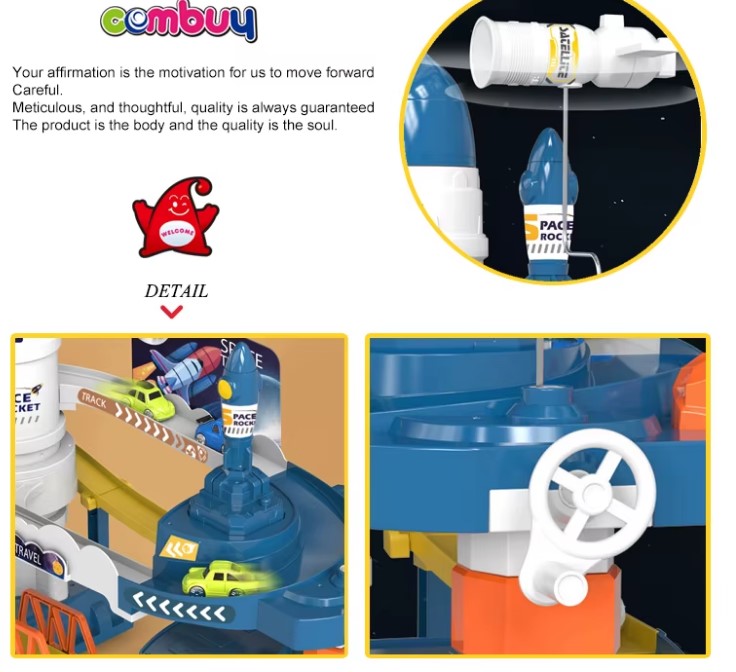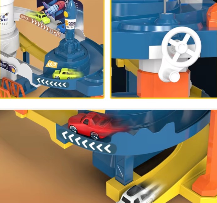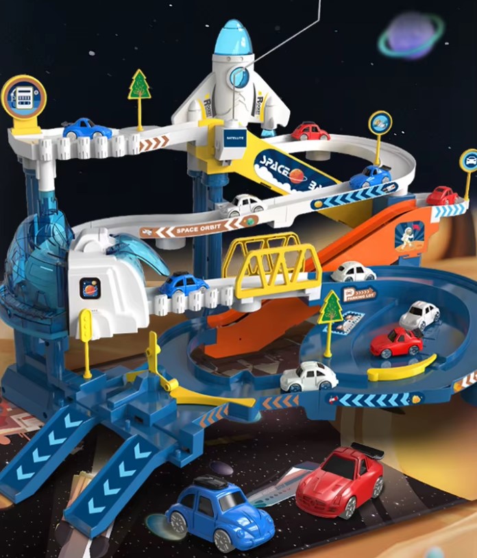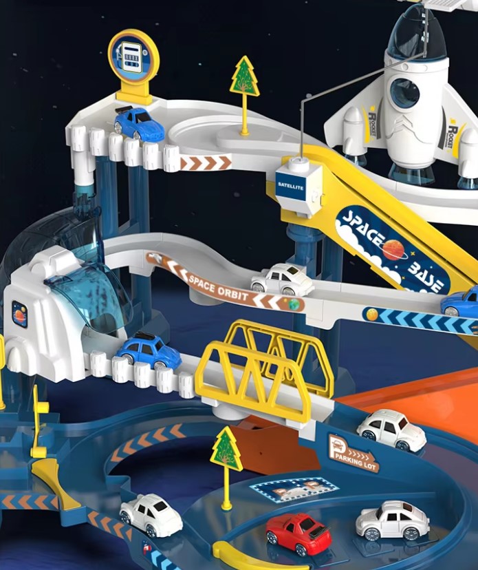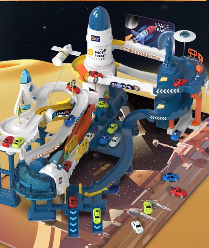 Număr piese: peste 50, incluzând rachete, satelit, piste, rampe și mașinuțe.