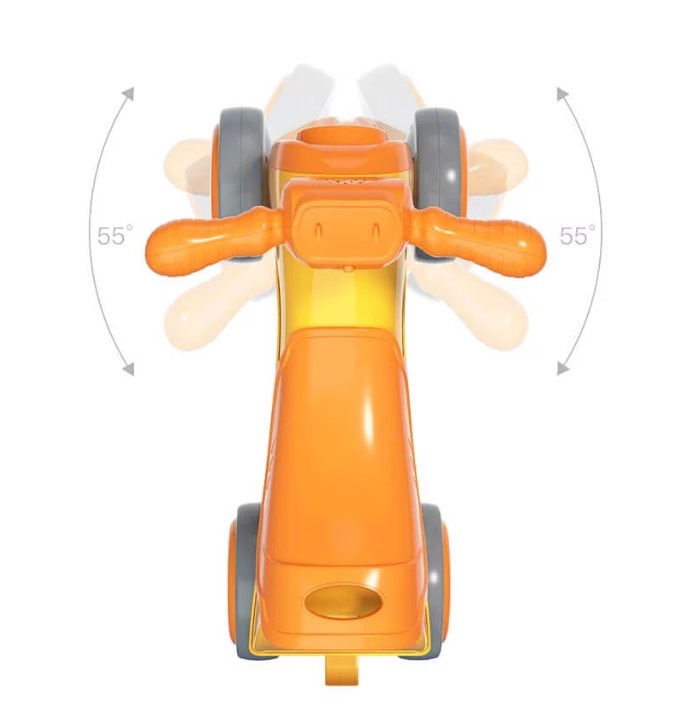 ✔ Funcții interactive – Butonul de pe ghidon activează lumini jucăușe și 3 melodii vesele, captivând atenția copilului.