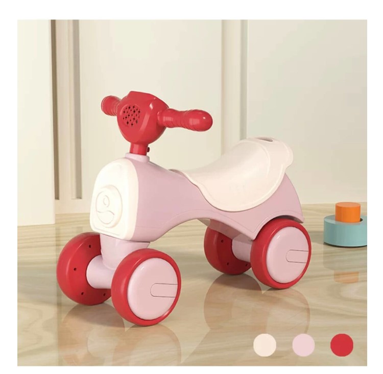 Bicicleta fara pedale cu 4 roti cu lumini si sunete, 1-3 ani Roz