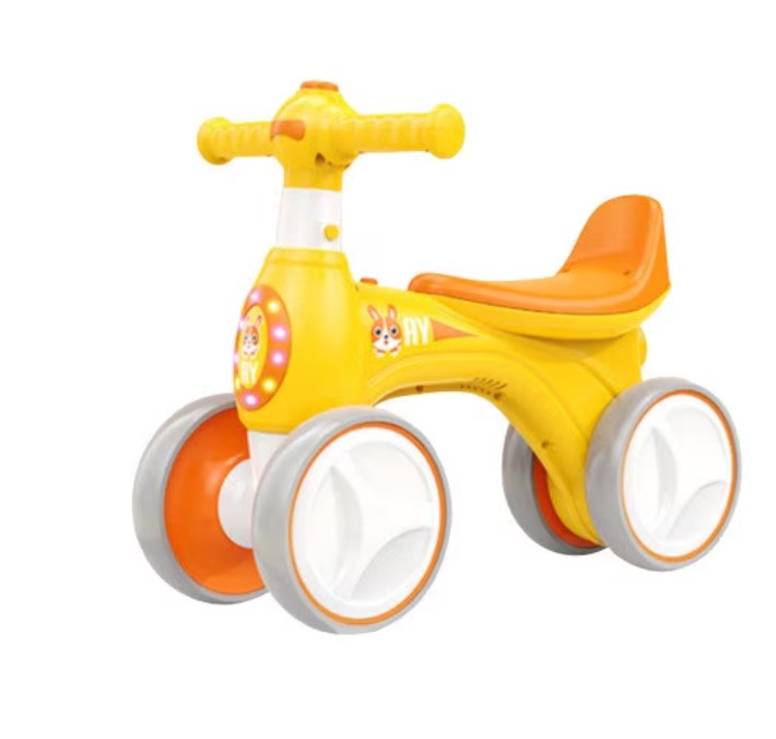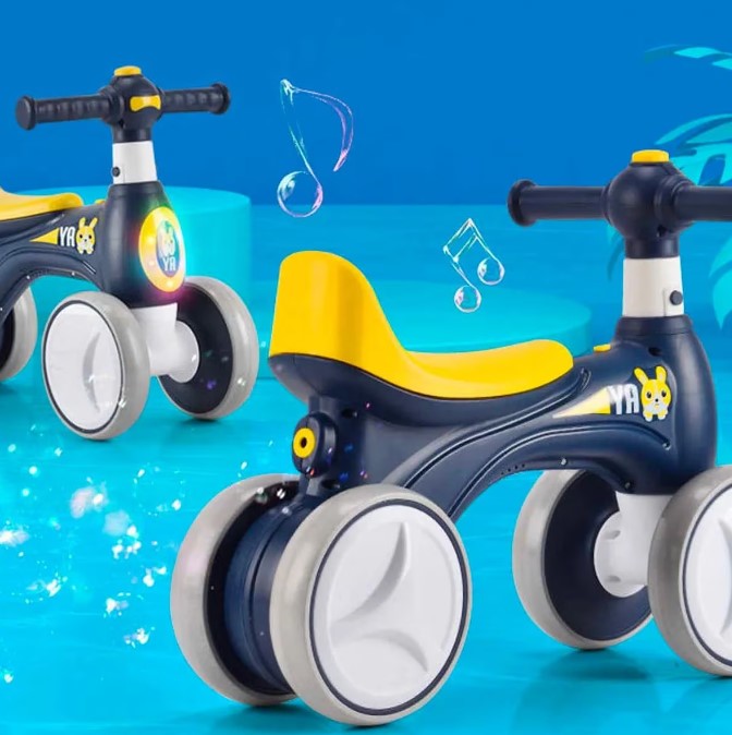 Bicicleta fara pedale cu 4 roti cu lumini, sunete, Baloane de sapun, 1-3 ani, Galben