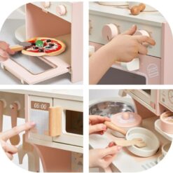 Transformă joaca într-o adevărată aventură culinară cu această bucătărie din lemn complet echipată, ideală pentru copiii pasionați de gătit! Cu un design delicat în nuanțe de roz pastel și multiple funcționalități interactive, bucătăria este perfectă pentru jocuri de rol educative și imaginative.