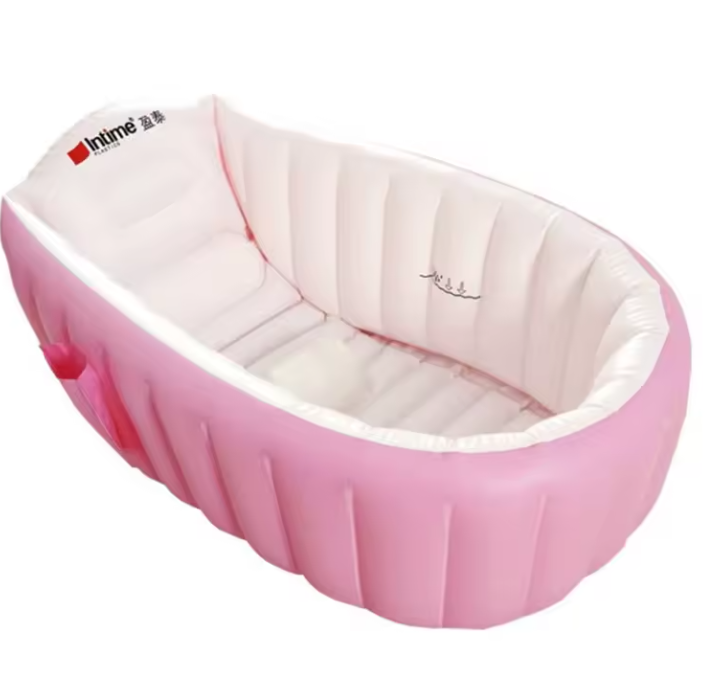 Baie gonflabila pentru copii. Are tetiera si suport pentru a tine copilul asezat. Se dezumflă și se depozitează ușor. Este o solutie ideala pentru calatorii sau spatii mici.