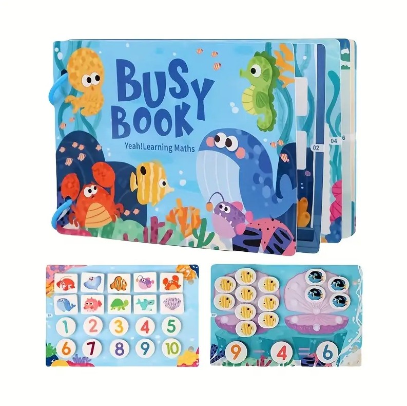 Ideală pentru călătorii și activități acasă, cartea Busy Book este compactă, practică și oferă nenumărate ocazii de învățare prin joacă.