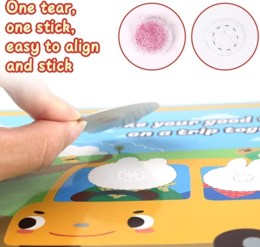 Stickerele pot fi aplicate, dezlipite și repoziționate ori de câte ori copilul dorește, ceea ce face ca activitățile să fie nelimitate și mereu distractive.