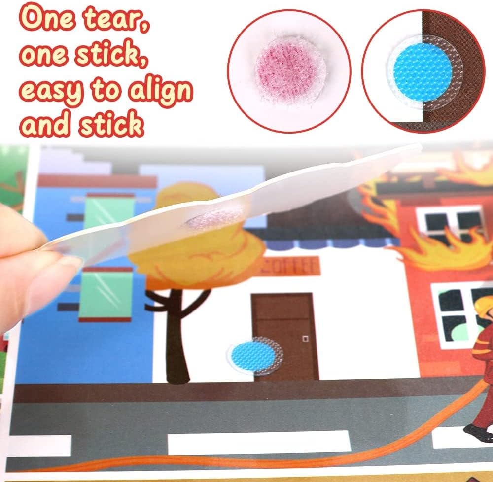 - Stickerele se lipsec pe piesele mobile, fiind un sistem cu velcro (arici). Astfel ca acestea devin reutilizabile/repozitionabile.