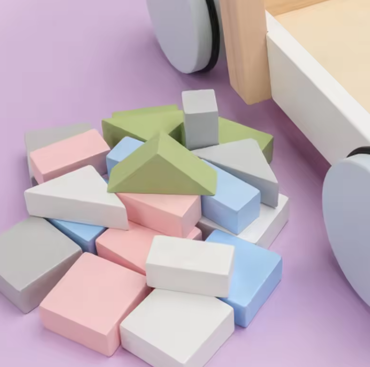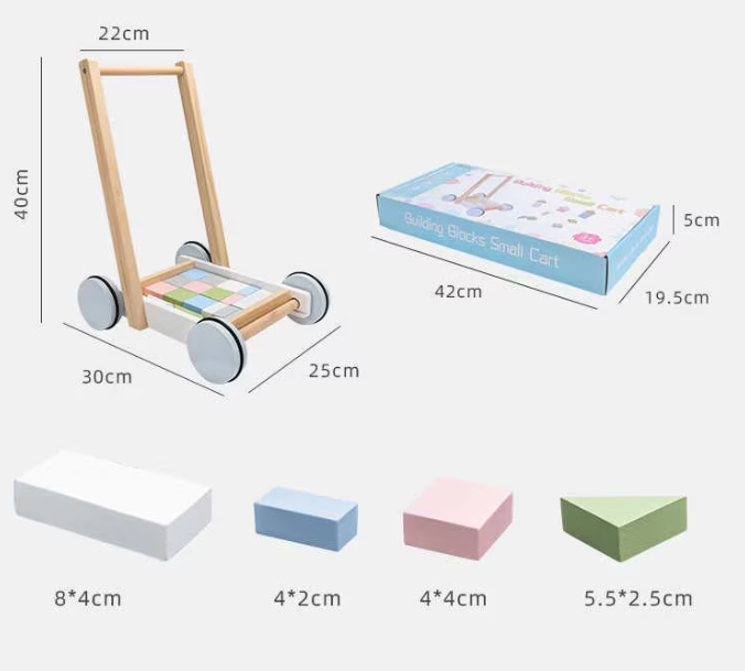 Acest carucior din lemn vine echipat cu 20 de cuburi de construcție în culori pastelate, special conceput pentru copii cu vârsta de peste 3 ani. Este ideal pentru dezvoltarea abilităților motorii, a coordonării mână-ochi și a creativității. Caruciorul este fabricat din lemn de înaltă calitate, având o structură robustă și durabilă, perfectă pentru cei mici.