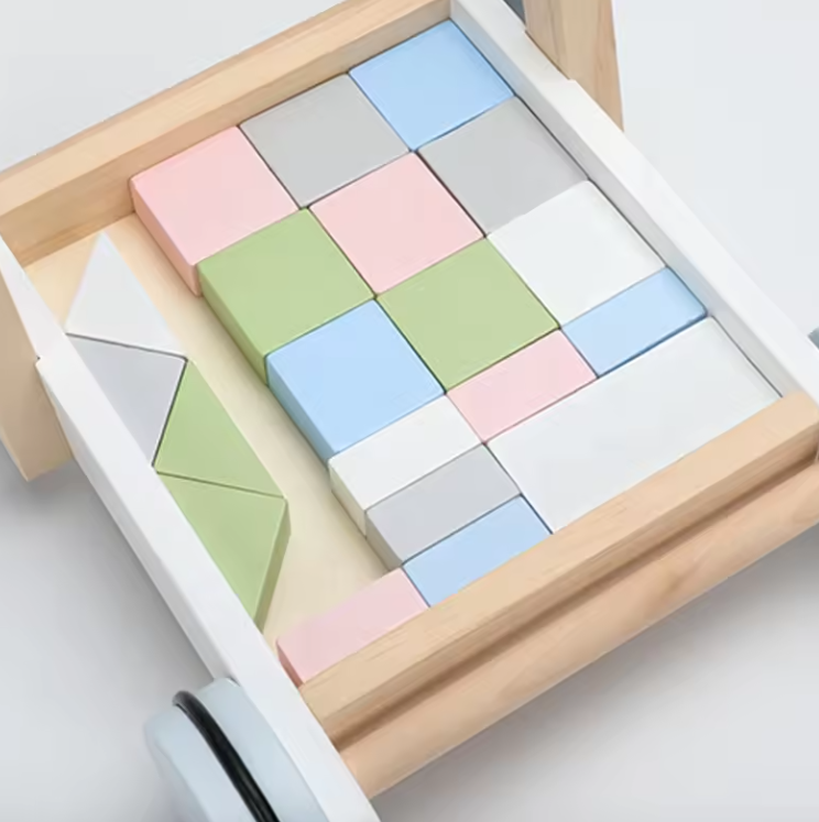 Carucior din lemn cu 20 cuburi de constructie, 3 ani