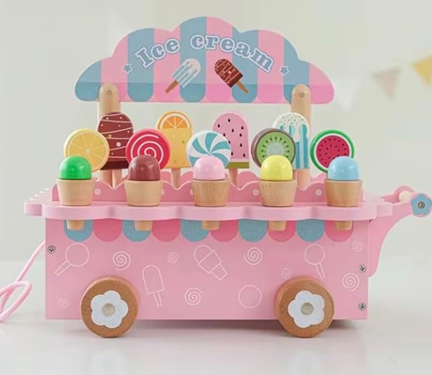 Acest Stand de înghețată din lemn este alegerea ideală pentru copiii de peste 3 ani care adoră să exploreze, să creeze și să interacționeze. Potrivit atât pentru joc individual, cât și pentru joc în grup, oferind o experiență educativă și distractivă în același timp.