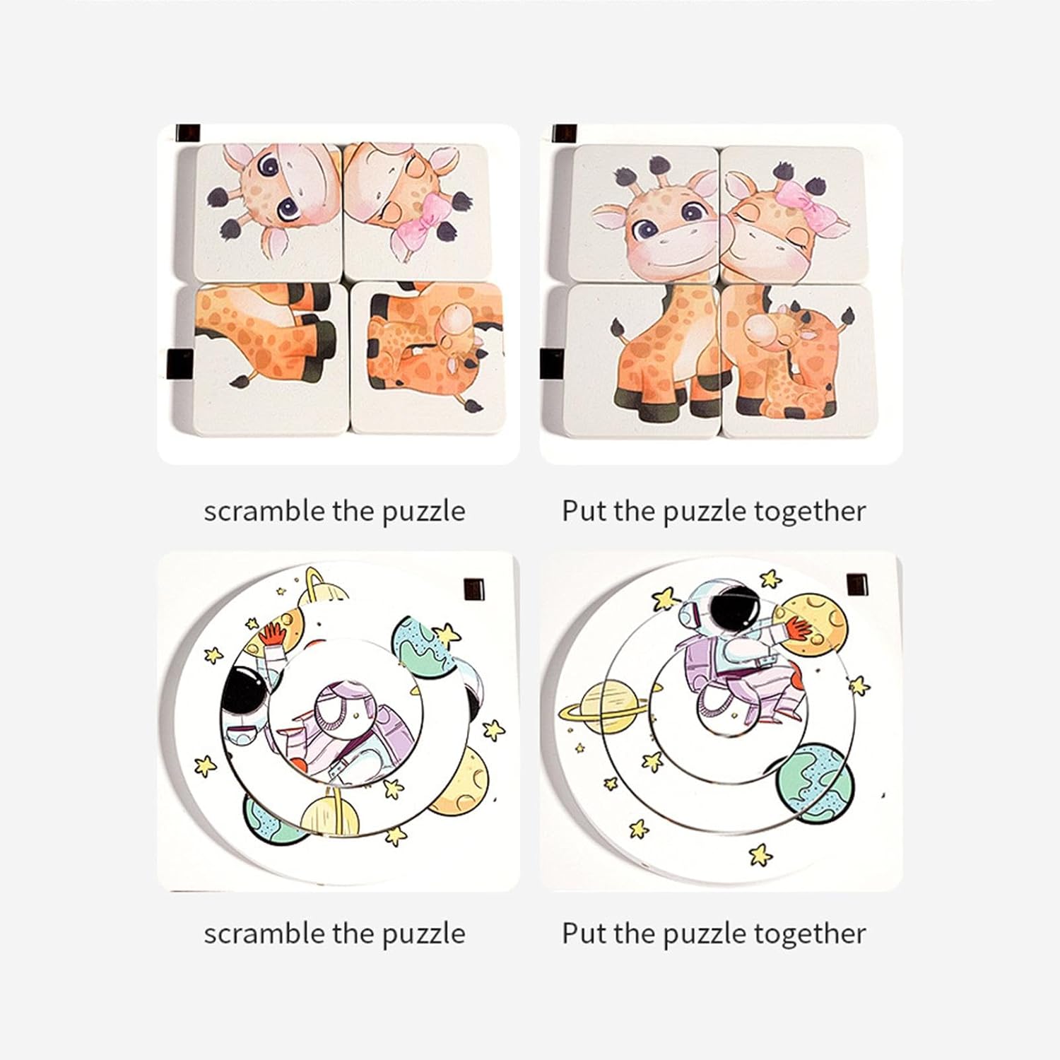 - Puzzle-uri rotative și blocuri pentru stimularea gândirii logice.