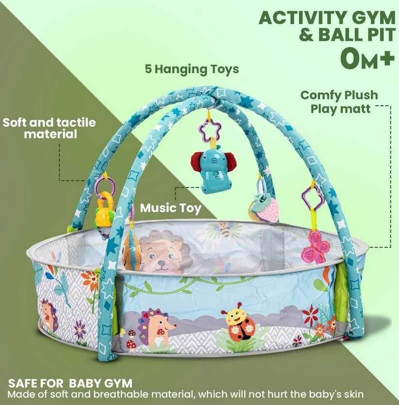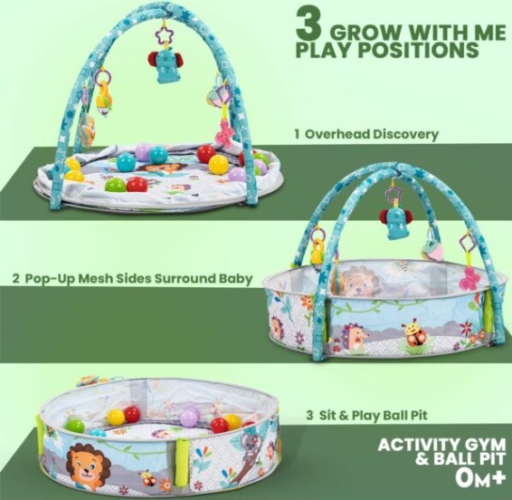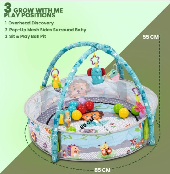 Un spațiu de joacă multifuncțional, colorat și sigur pentru cei mai mici exploratori! Această saltea de activități cu arcadă și piscină cu bile este ideală încă din primele luni de viață, încurajând dezvoltarea motrică, stimularea senzorială și joaca activă. Construită pe conceptul „Grow with me”, oferă 3 etape diferite de utilizare pe măsură ce copilul crește.