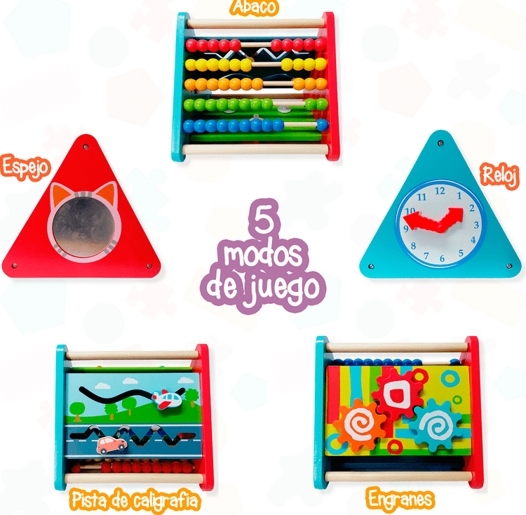 Acest centru de activități multifuncțional este perfect pentru dezvoltarea timpurie a abilităților cognitive și motorii ale copilului tău. Cu un design colorat și captivant, această jucărie oferă cinci moduri diferite de joacă într-o singură structură compactă, fiecare menită să stimuleze și să educe bebelușii într-un mod distractiv și interactiv.