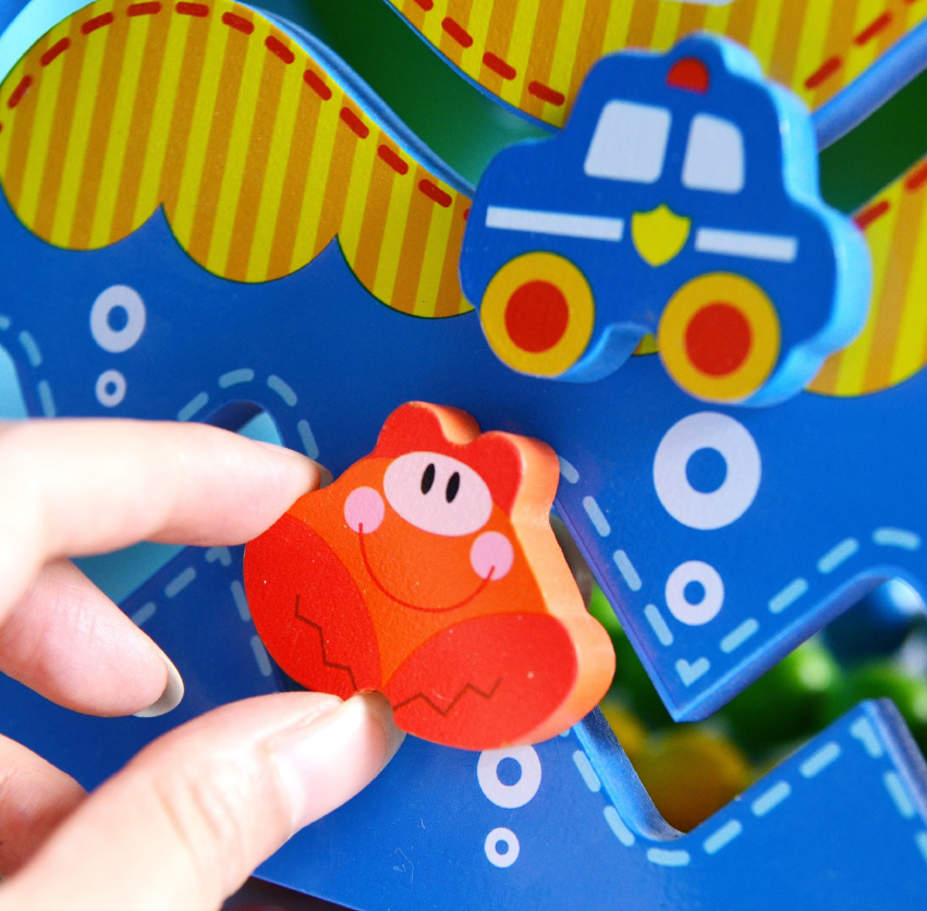 Joc educativ din lemn, Litere si cifre-Geoboard, 3 ani+