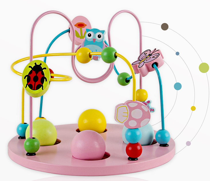 - Labirint de mărgele: Un labirint cu mărgele colorate care îmbunătățește coordonarea mână-ochi și stimulează gândirea logică.