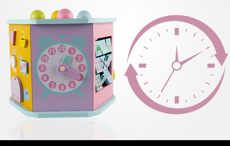 - Ceas educativ: Ajută copiii să învețe noțiunile de timp printr-un ceas cu ace mobile, ideal pentru familiarizarea cu orele și minutele.