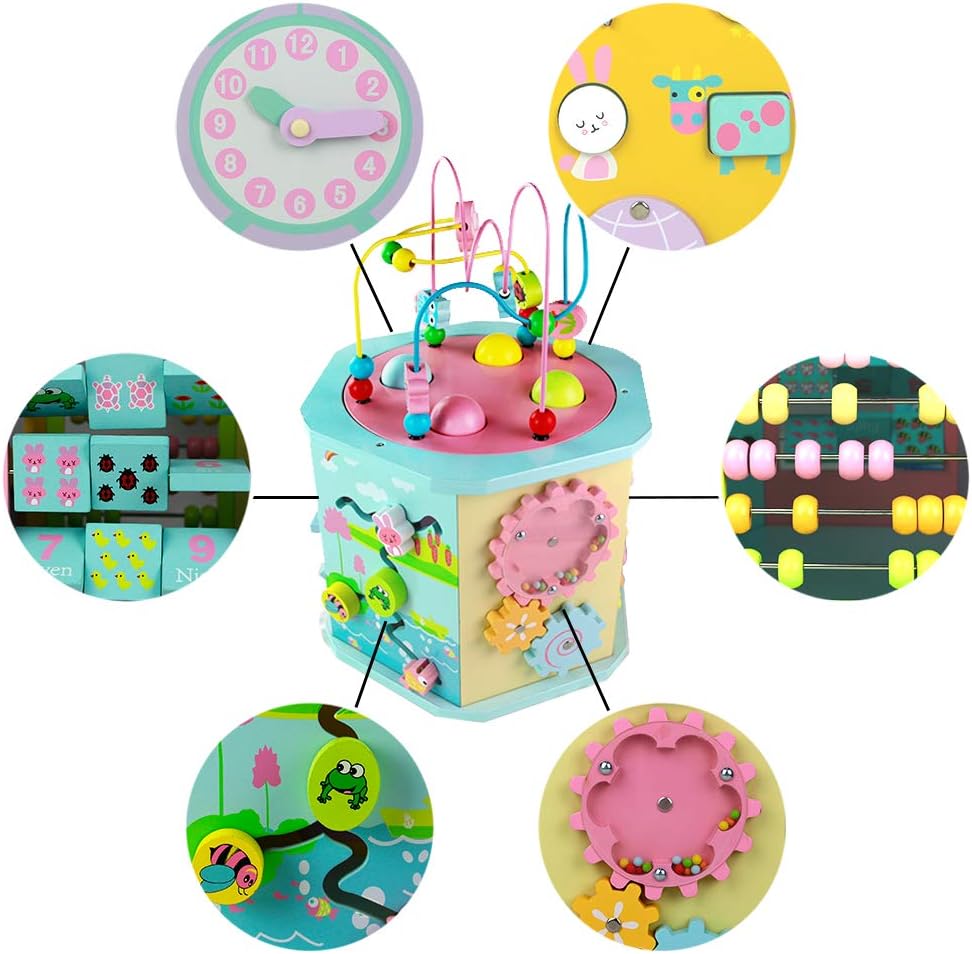 Acest centru de activități 8 în 1 este o jucărie educativă multifuncțională, special concepută pentru a stimula dezvoltarea bebelușilor printr-o varietate de activități interactive. Designul său hexagonal oferă acces la multiple funcții pe fiecare dintre laturi, creând un mediu de joacă captivant și diversificat.