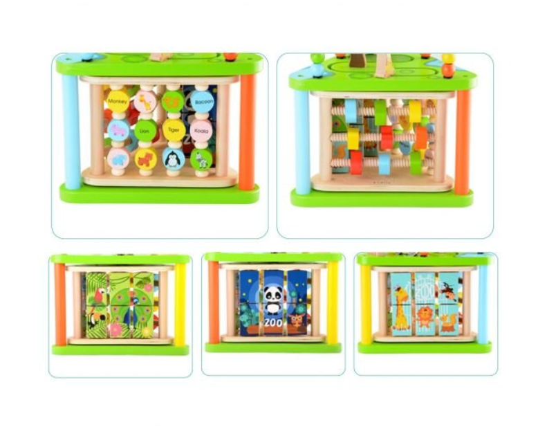 Acest centru de activități multifuncțional, marca KIDUS, este proiectat pentru a stimula dezvoltarea cognitivă și motorie a bebelușilor, oferind o varietate de activități captivante. Realizat din lemn de înaltă calitate, cu culori vii și atractive, această jucărie educativă este ideală pentru copiii cu vârste începând de la 18 luni.