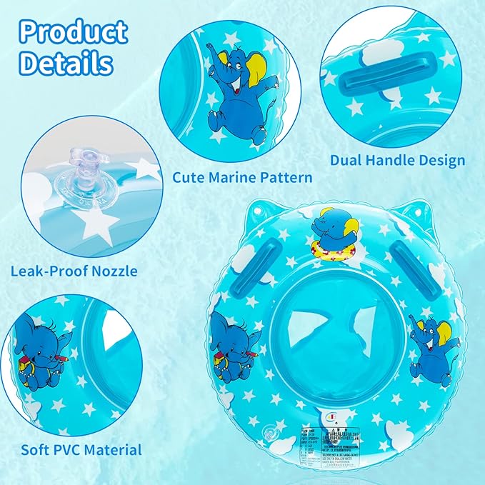 Colac de înot cu chiloțel și mânere – Elefant Albastru, 6 luni – 3 ani