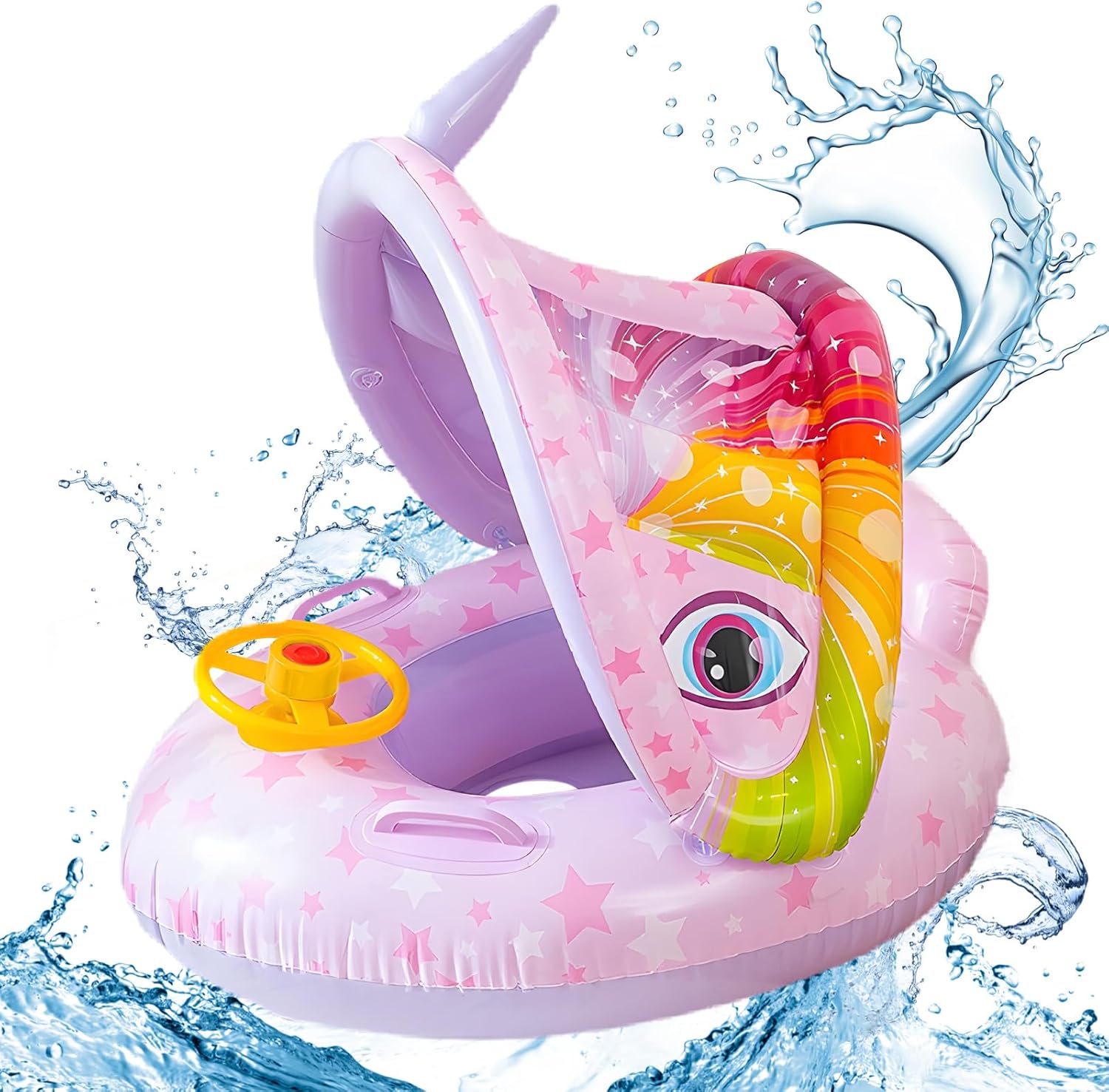 Colacul gonflabil în formă de bărcuță cu design unicorn este alegerea perfectă pentru primele bălăceli ale celor mici! Conceput special pentru bebeluși și copii mici, oferă siguranță, confort și distracție maximă în timpul activităților la piscină sau la mare.
