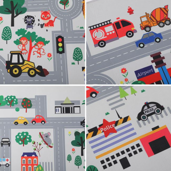 Explorati noul nostru covor decorativ tematic cu trafic urban, creat special pentru camera baietilor! Acest design modern din textil de calitate il va transpune pe micutul dvs. in mijlocul aventurilor urbane. Mamici, oferiti-i spatiul perfect pentru jocuri imaginative cu masinute si eroi urbani. Cu detalii autentice si culori vibrante, acest covor transforma orice camera intr-o metropola miniaturala. Durabil si usor de intretinut, acesta este accesoriul ideal pentru micii iubitori de oras si miscare. Investiti in calitate si imaginatie – pasiti acum in lumea urbanului stilizat!