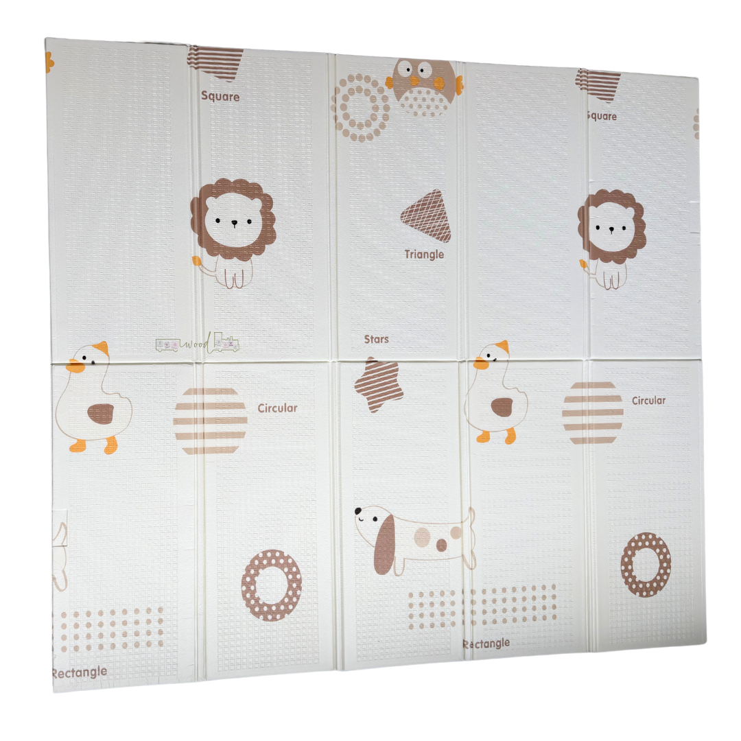 Transformă spațiul de joacă într-o aventură plină de culoare și veselie cu acest covor termoizolant cu două fețe, ideal pentru dezvoltarea copiilor mici. Pe o parte, personajele adorabile precum elefantul, girafa și hipopotamul creează o atmosferă de sărbătoare, iar pe verso, traseul urban plin de mașinuțe și clădiri îi încurajează pe cei mici să exploreze lumea orașului.