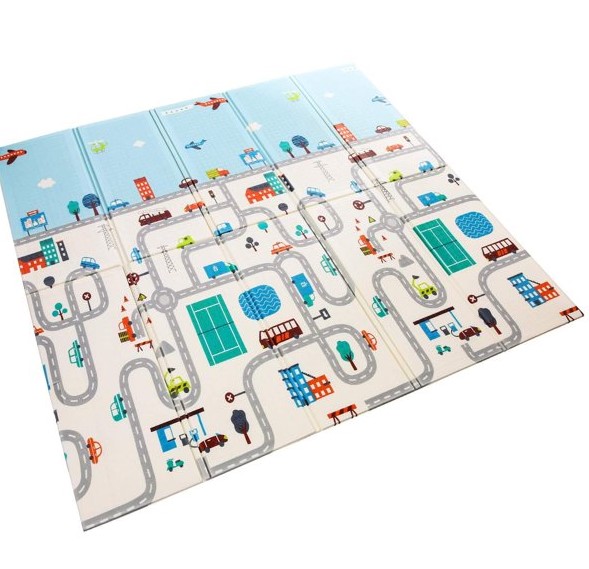 Covor pliabil de joacă termoizolant cu două fețe – Model Orășel – 200 x 150 x 0.8 cm