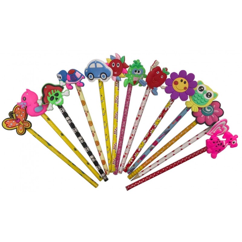 Creion grafit CNX, HB, corp rotund diverse culori si modele, cap figurine gumate