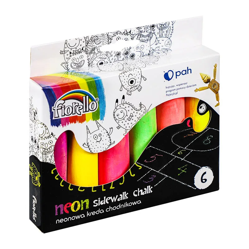 Pregătește-te să aduci la viață imaginația copilului tău cu setul de cretă groasă de la Fiorello, un must-have pentru micii artiști în devenire. Acest set vibrant include 6 bucăți de cretă groasa, in culori neon, perfecte pentru a desena pe asfalt, table sau orice suprafață adecvată pentru cretă.