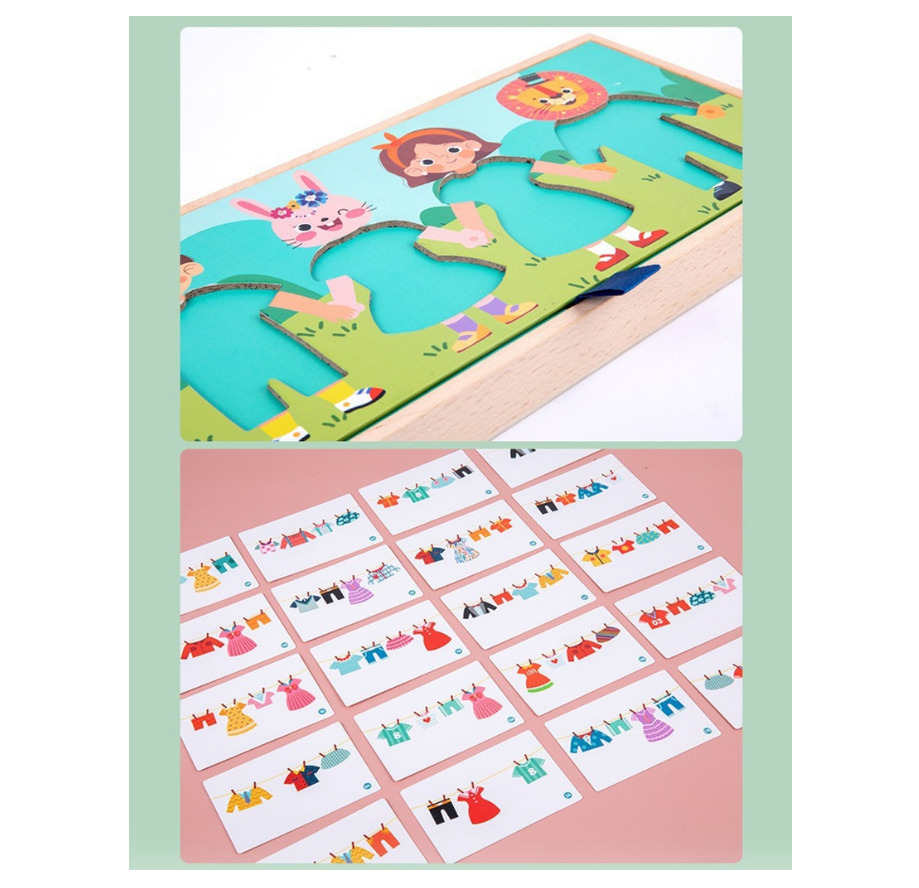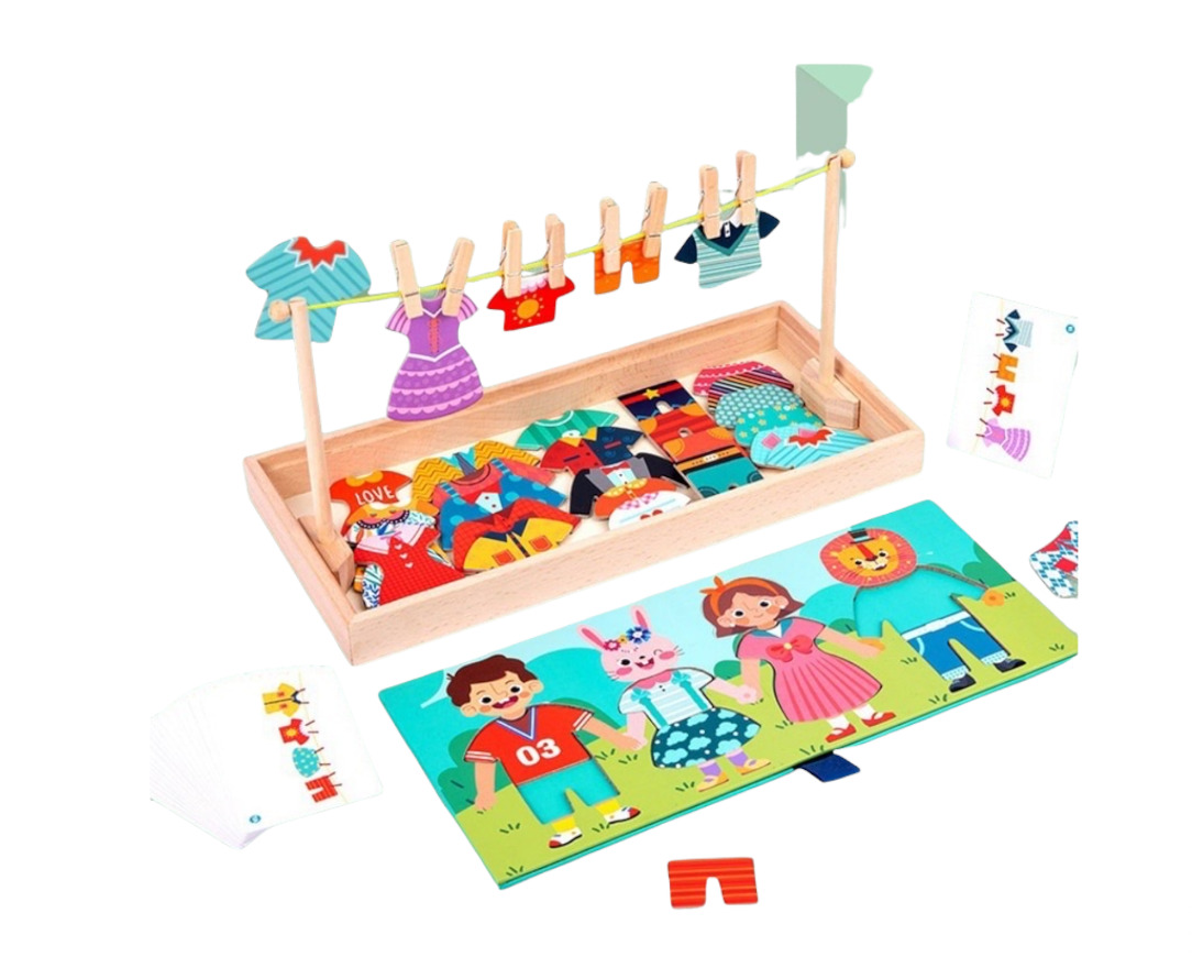Puzzle imbraca familia si intinde rufele la uscat, puzzle incastru lemn, 3 ani plus
