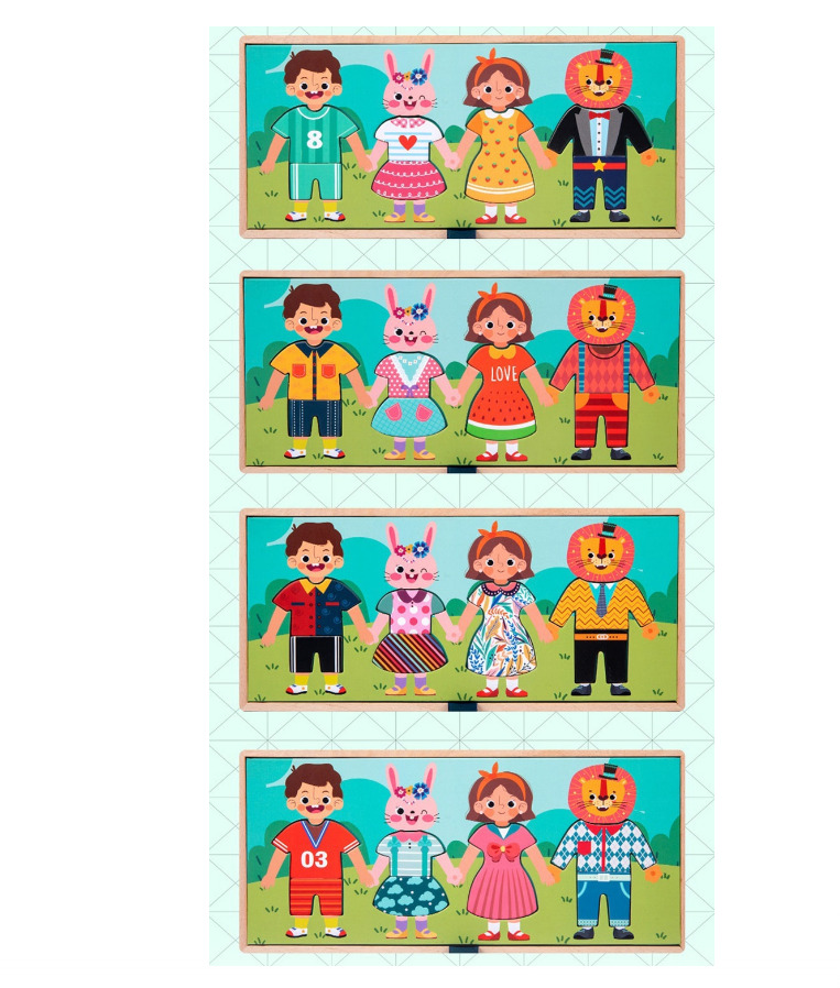- imbraca familia, selectand din gama diversa de articole vestimentara, piese tip puzzle incastru;