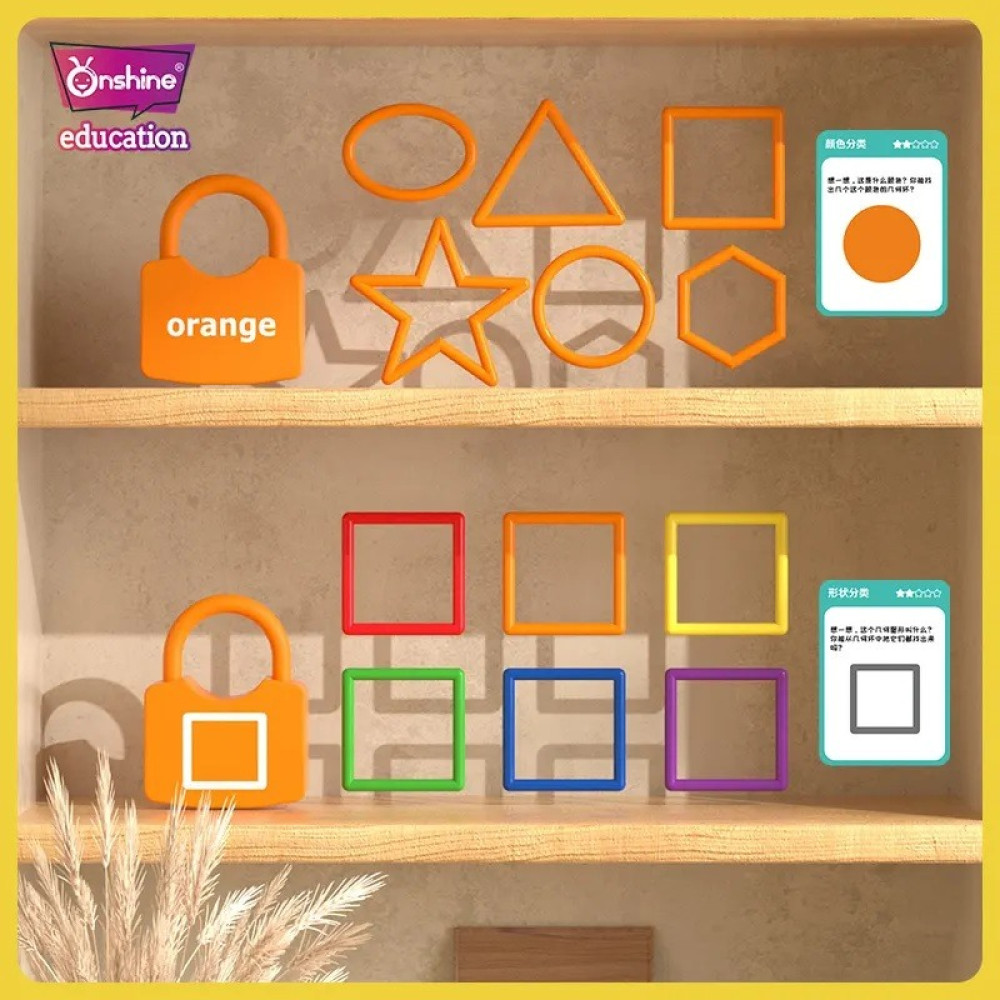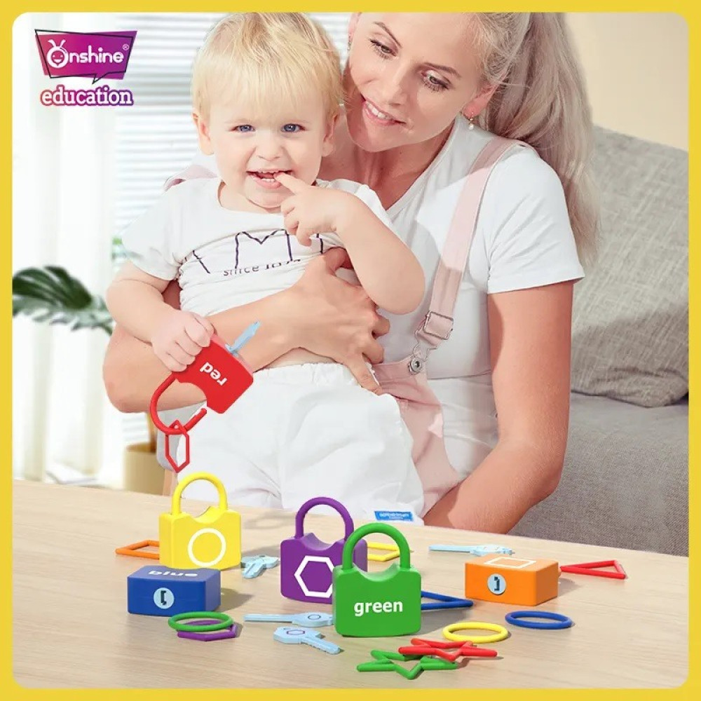Fiecare lacat are o fata dubla: pe o parte sunt desenate cate o forma geometrica iar pe cealalta parte se regaseste denumirea culorii in Limba Engleza. De asemenea, fiecare cheie are desenata imaginea corespunzatoare fiecarui lacat.
