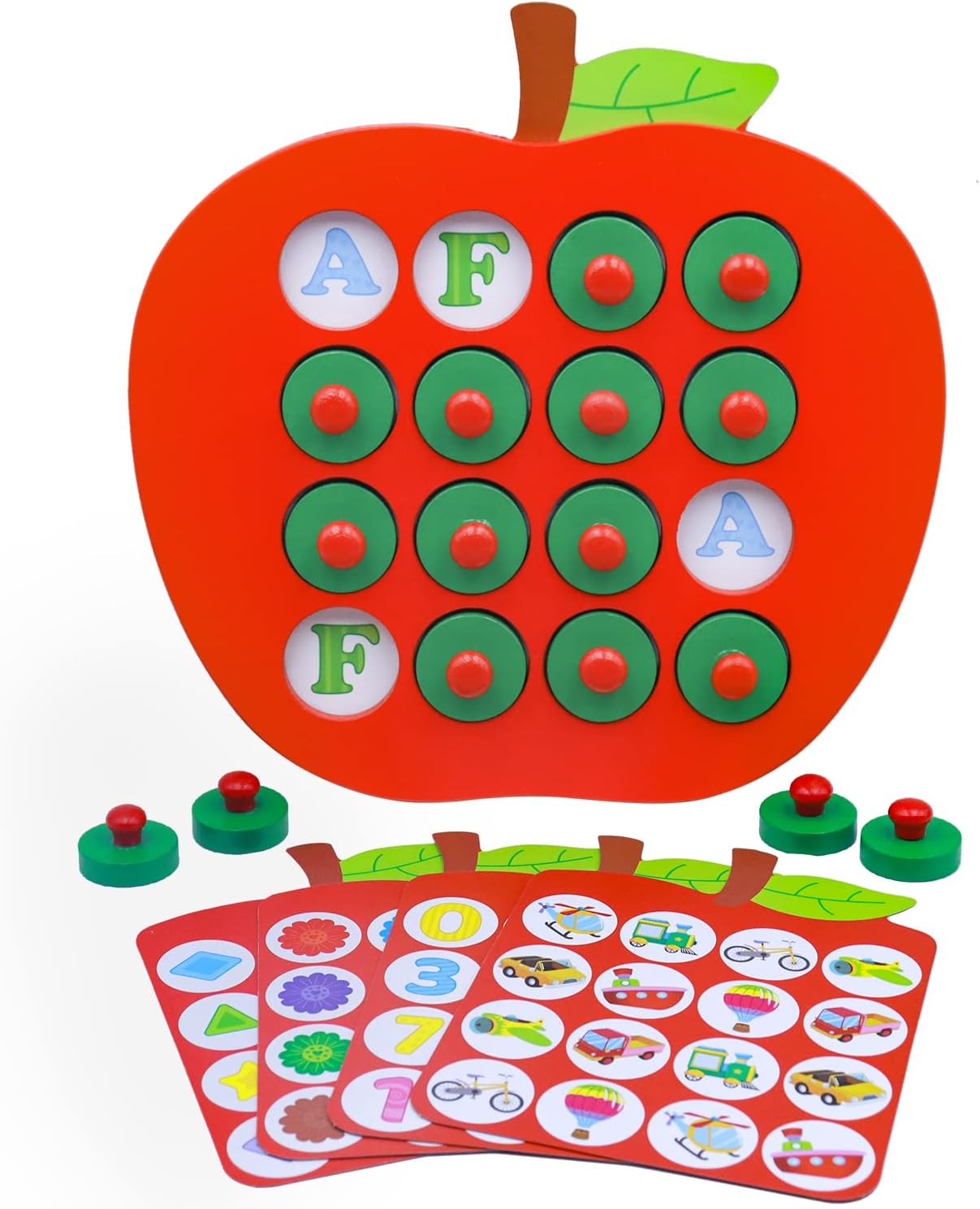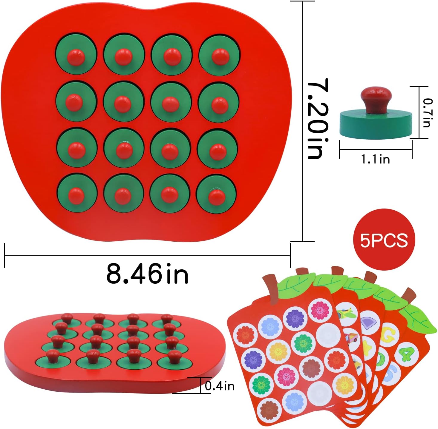 Acest joc educativ din lemn, în formă de măr, este conceput pentru a stimula memoria, atenția și capacitatea de asociere a copiilor. Este realizat din lemn natural, vopsit cu culori pe bază de apă, non-toxice, și are margini netede pentru siguranța celor mici.