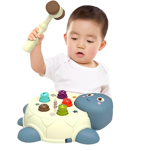 - Dezvolta capacitatea de concentrare si rabdare prin nimerirea ,, tintei ”.Prin lovirea cu ciocanelul, jocul educativ dezvolta dexteritatea si abilitatiile de coordonare mana-ochi ale prichindelului tau