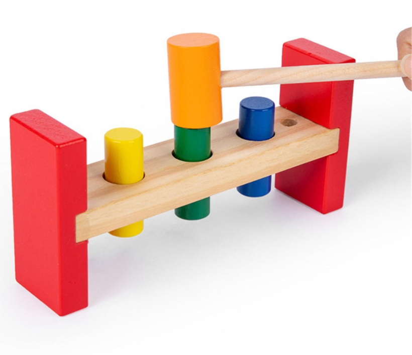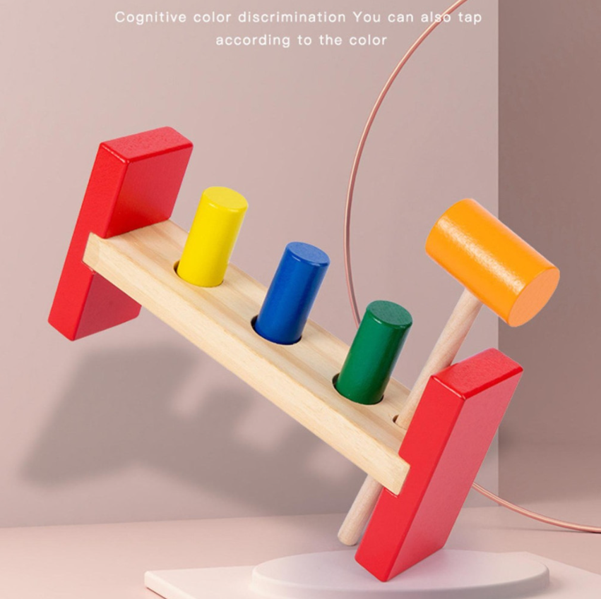 - Jucaria educativa,multifunctionala de tip Montessori, din lemn, cu ciocanel pentru bebelusi ajuta la dezvoltarea motriticitatatii fine si a coordonarii ochi-mana, la antrenarea capacitatii de a intelege relatia cauza-efect si abilitatea de a invata culorile, prin lovirea formelor colorate cu ciocanul.