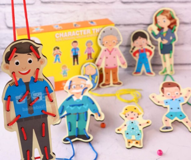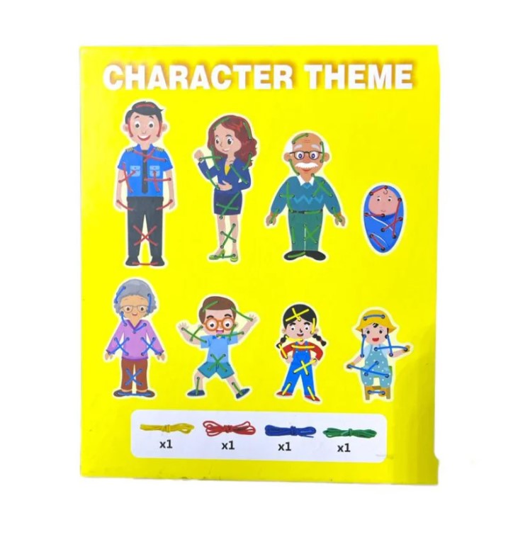 Mod de utilizare: Copilul alege una dintre figurine și folosește un șnur pentru a-l introduce prin orificiile existente, imitând coaserea hainelor sau conturarea siluetei. Activitatea poate fi ghidată de un adult sau lăsată la libera imaginație a copilului. Este un joc excelent pentru dezvoltarea motricității fine, esențială în pregătirea pentru scris.