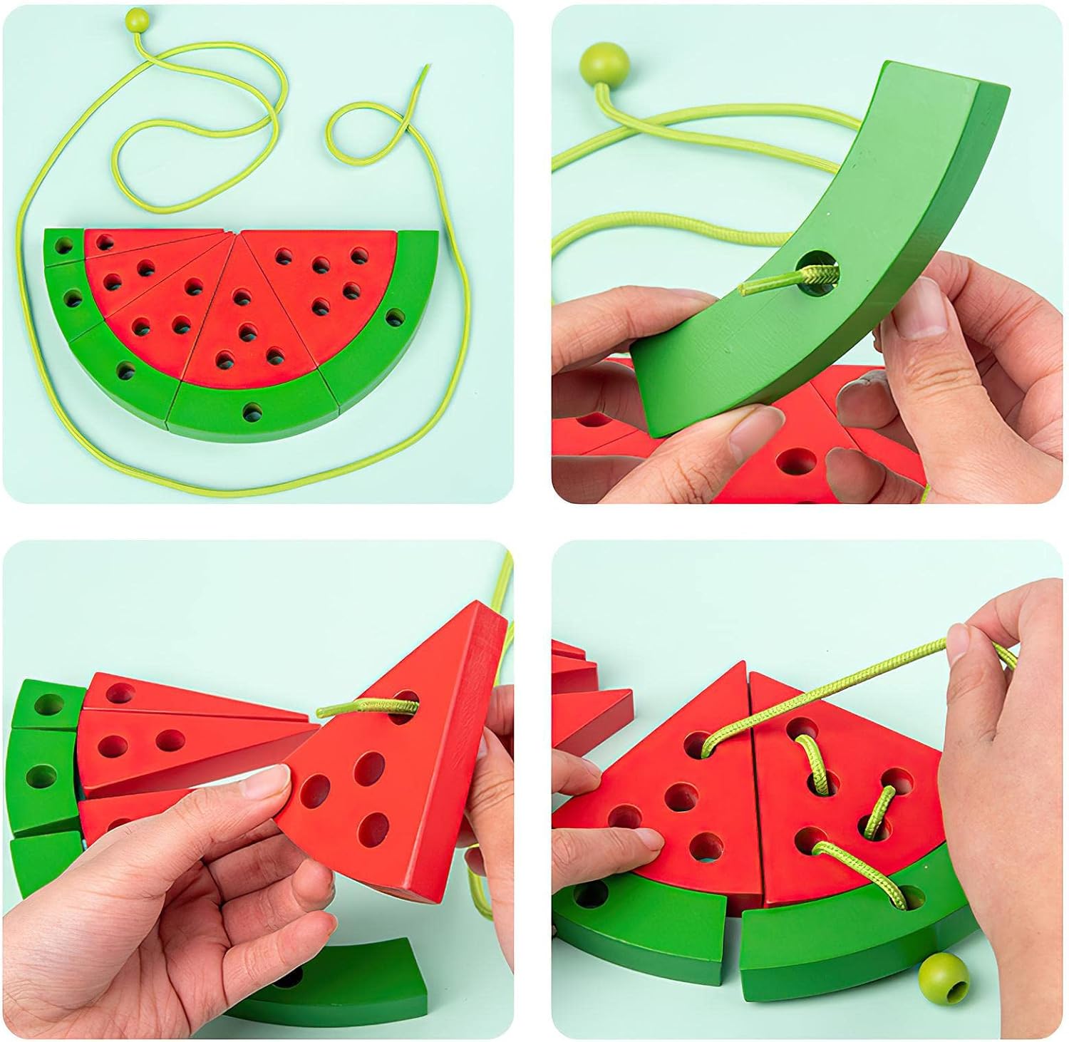 Jocul de șnuruit „Pepene” este o jucărie educativă și distractivă, destinată copiilor cu vârsta de 3 ani și peste. Este realizat din lemn de înaltă calitate, vopsit în culori vii și atractive, reprezentând felii de pepene verde și pepene roșu.