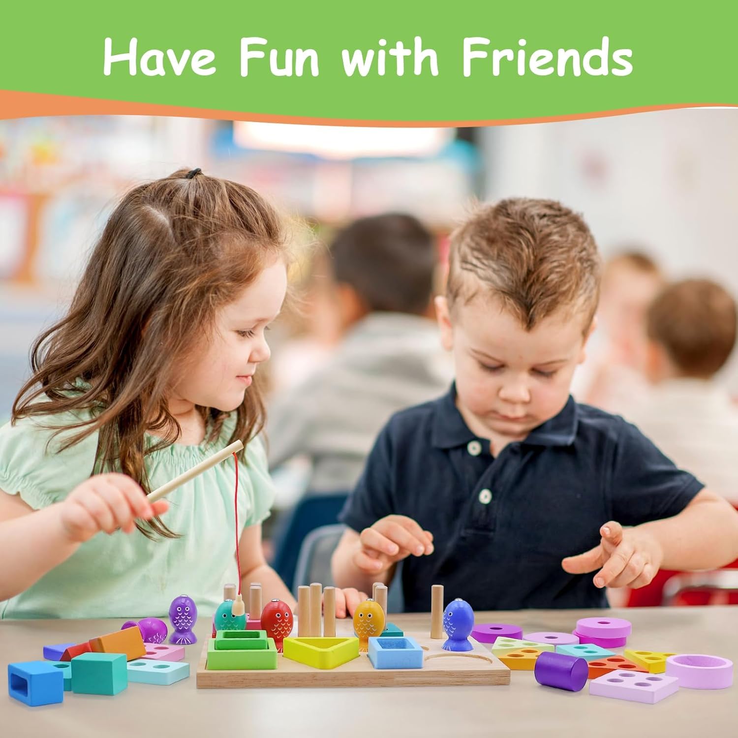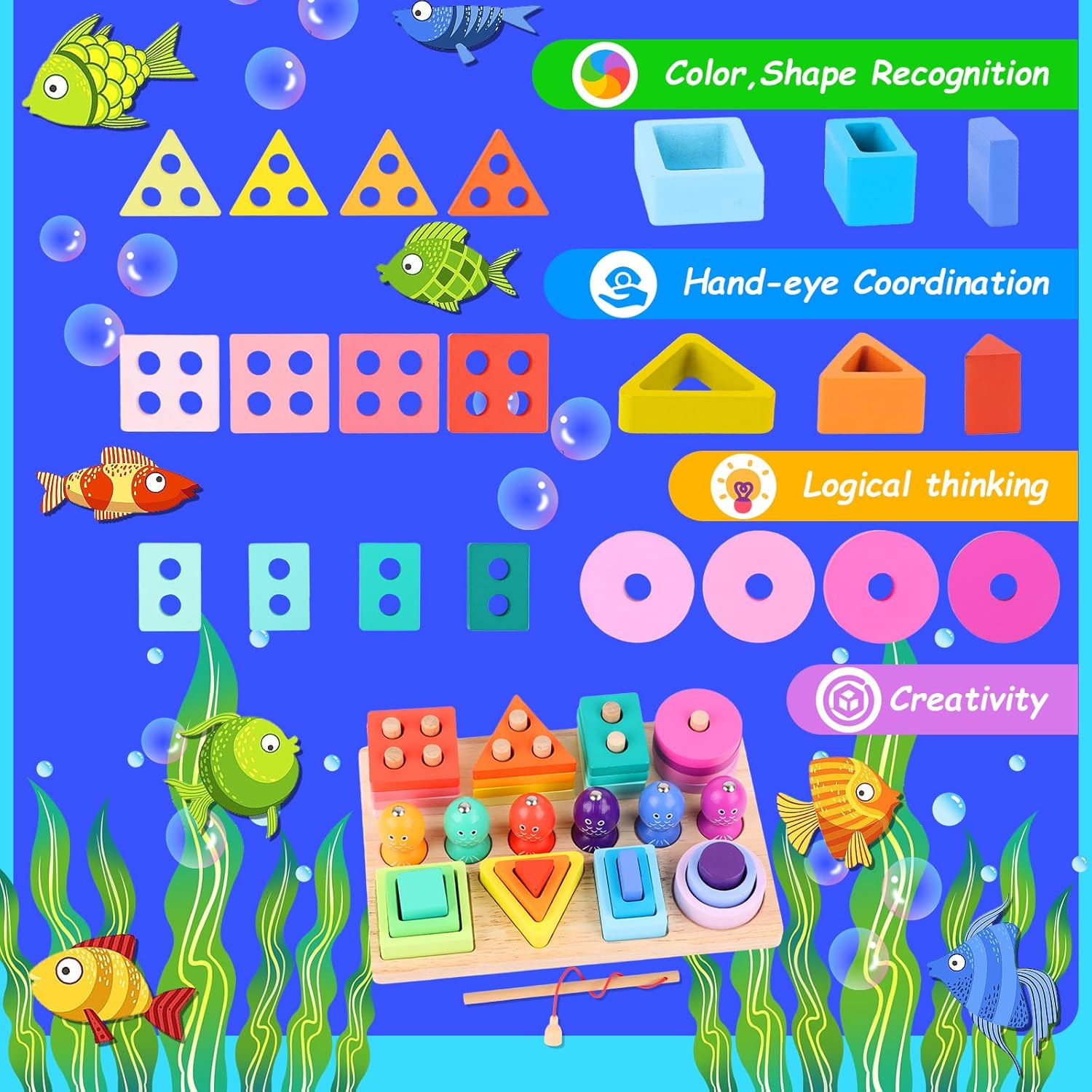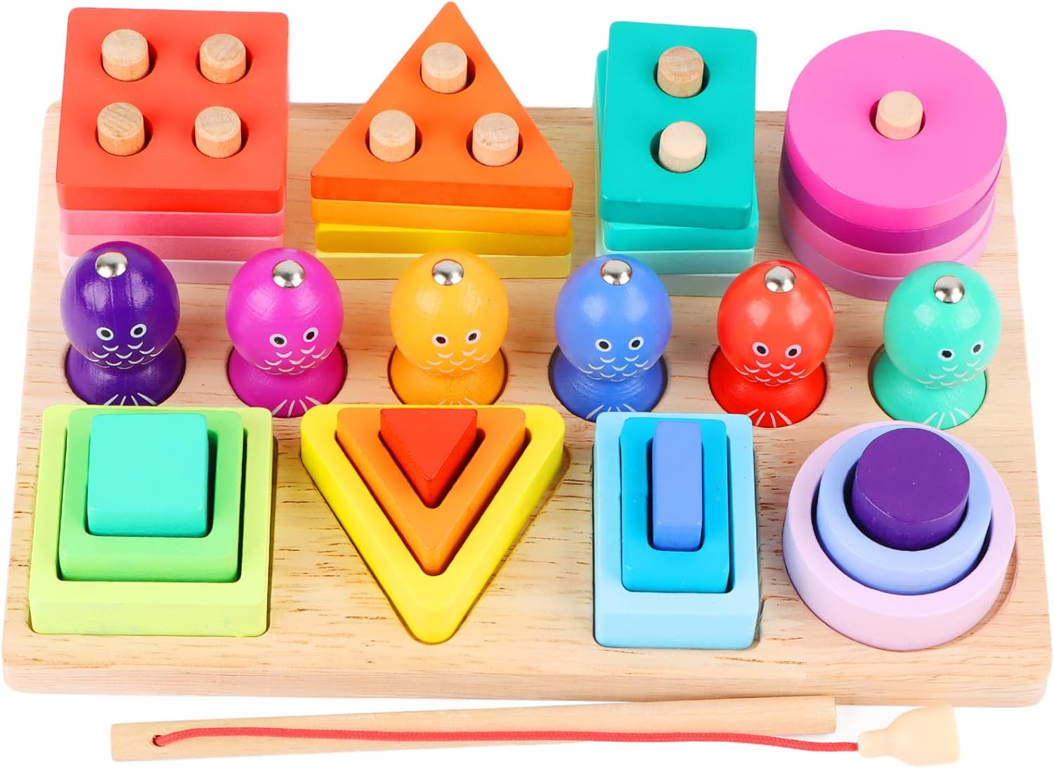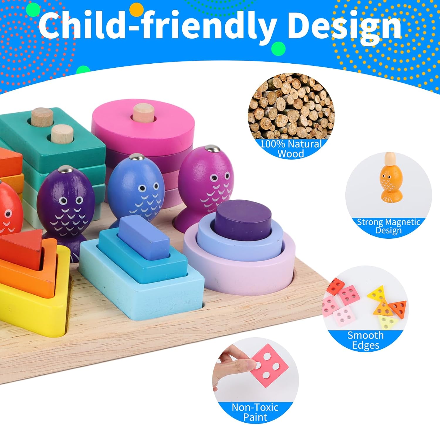 - Pescuitul magnetic: Copilul folosește undița pentru a prinde piesele magnetice în formă de peștișori, îmbunătățindu-și dexteritatea.