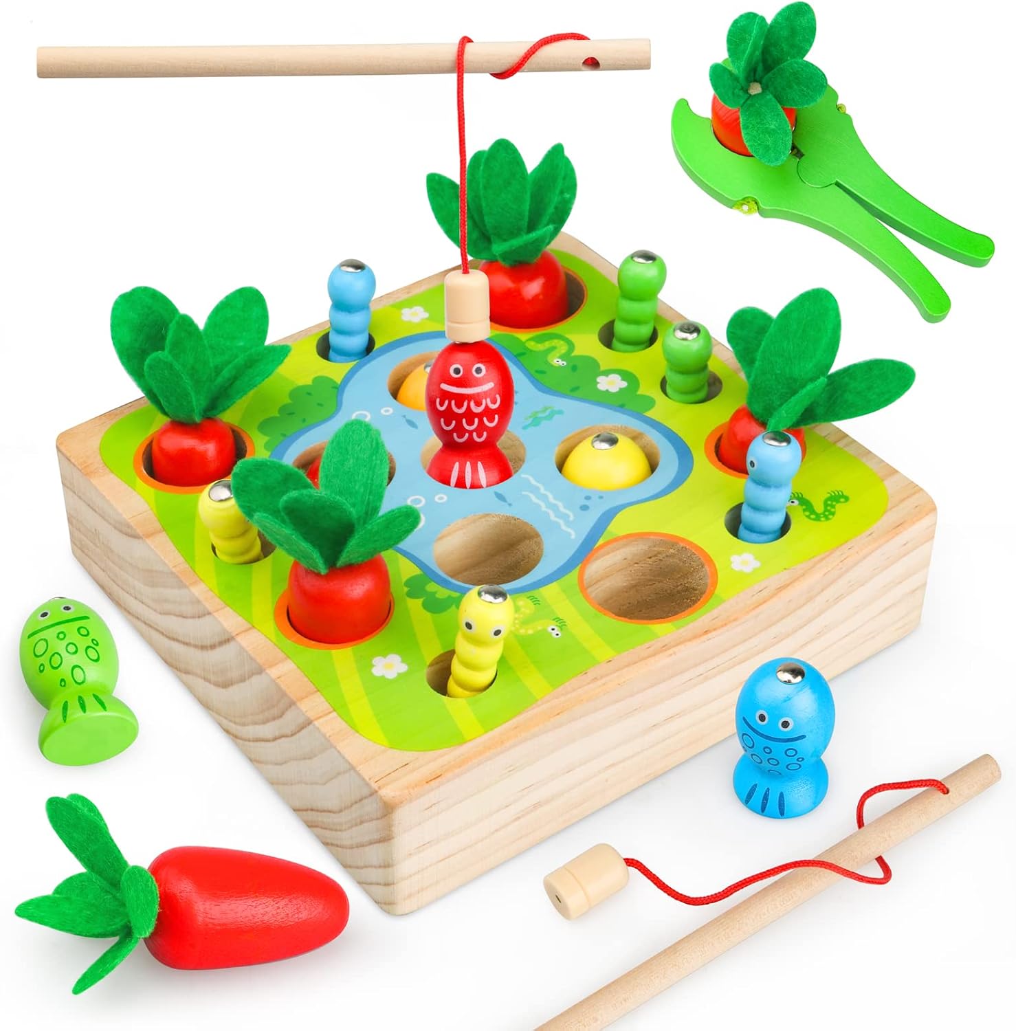 Joc educativ Montessori din lemn – Dexteritate și pescuit magnetic, 3 ani+
