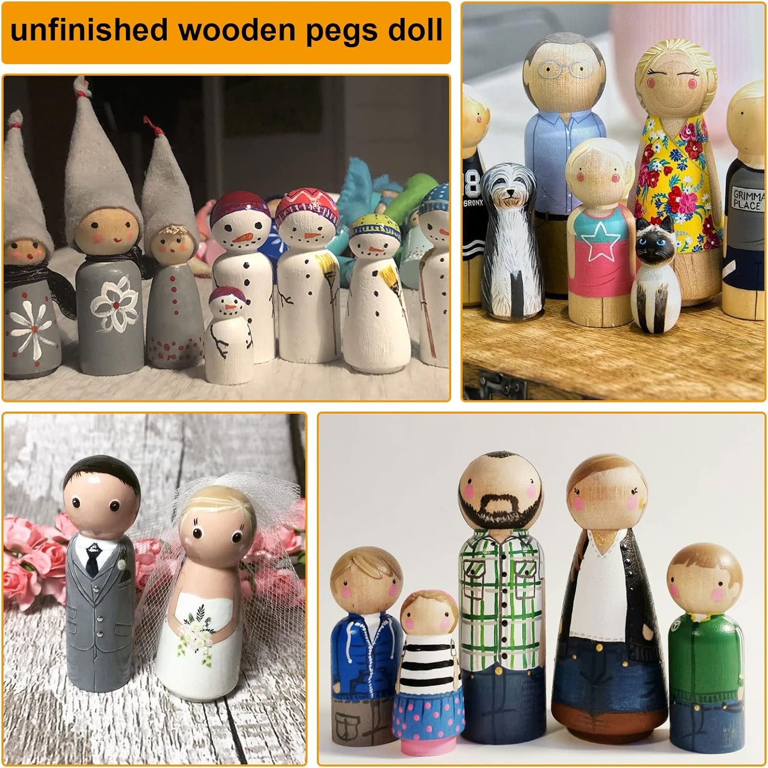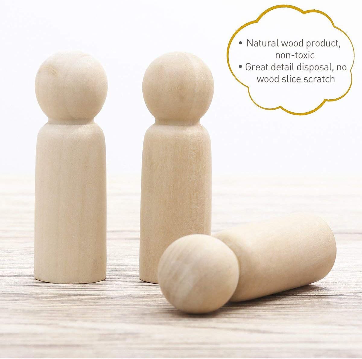 Figurinele tip PEG DOLL din lemn vin intr-o cutie de plastic cu capac, si sunt din lemn natur. Se pot picta, decora, dupa cum isi doreste copilul, putand fi desfasurate o multitudine de activitati de creatie, joc de rol.
