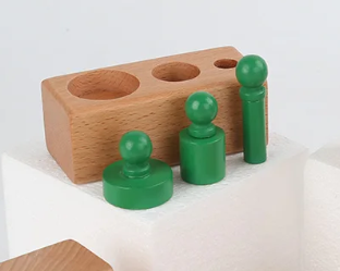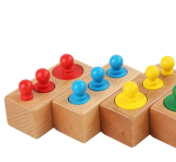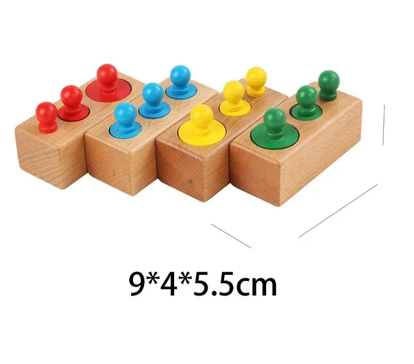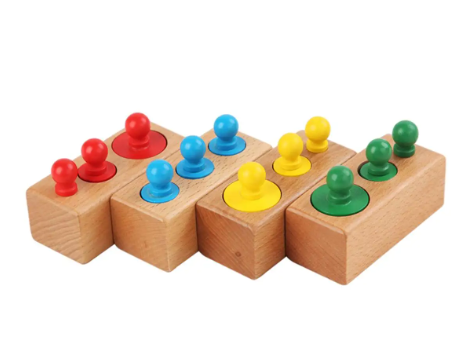 Joc din lemn de tip Montessori – Set cilindri colorati, 3 ani