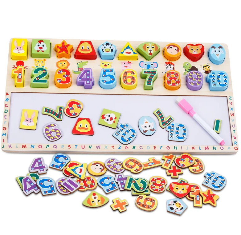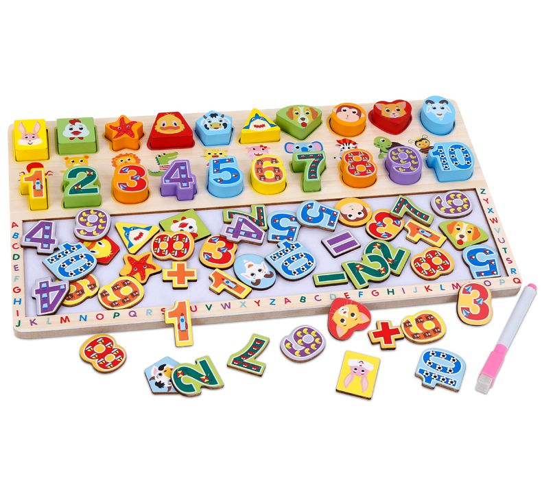 Acest joc educativ 3 în 1 oferă copiilor o modalitate creativă și interactivă de a învăța numerele, formele și culorile într-un mod distractiv. Setul include cifre, forme geometrice viu colorate și o tăbliță de scris, care îi ajută pe cei mici să-și dezvolte abilitățile motorii fine și să-și îmbunătățească recunoașterea numerelor și a formelor.