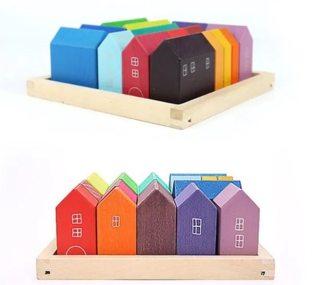 Antrenarea gândirii logice: Sortarea căsuțelor după criterii (culoare, formă, mărime) sau construirea de turnuri și secvențe ajută la dezvoltarea clasificării și serierii.