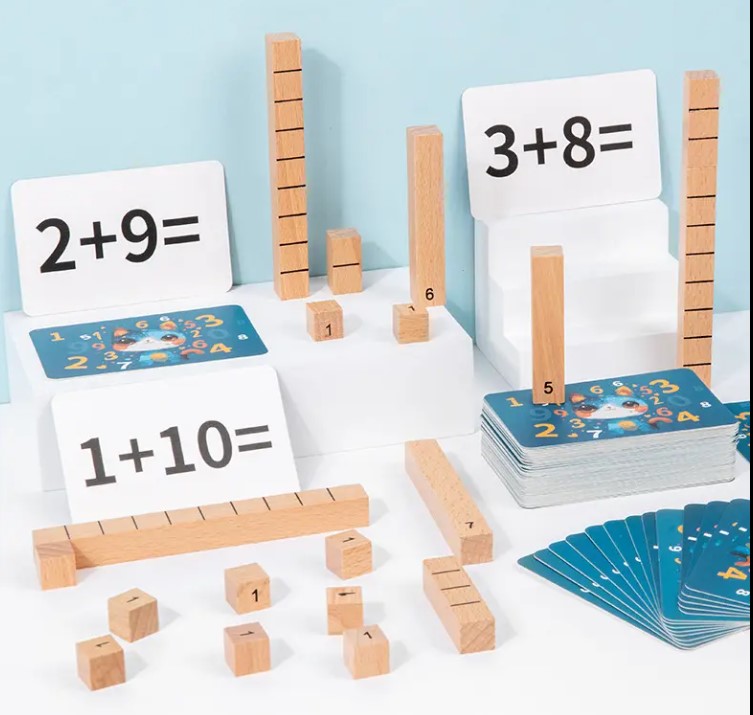 - 10 bețe numerice din lemn, gradate și numerotate de la 1 la 10, fiecare crescând în lungime proporțional cu numărul reprezentat.