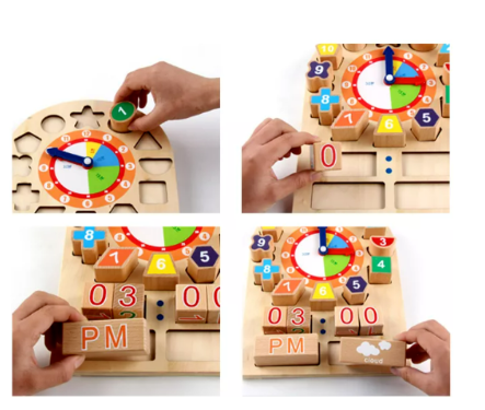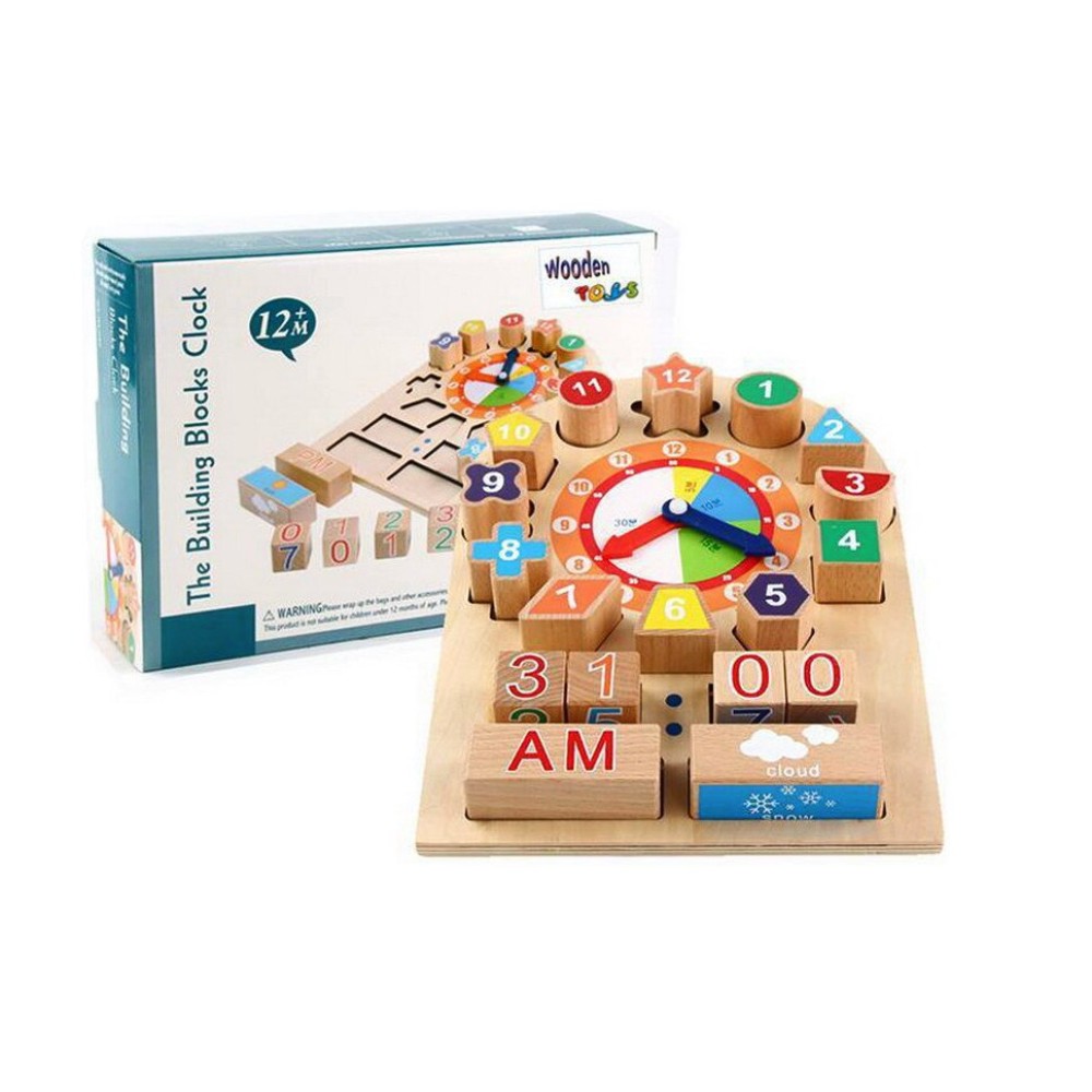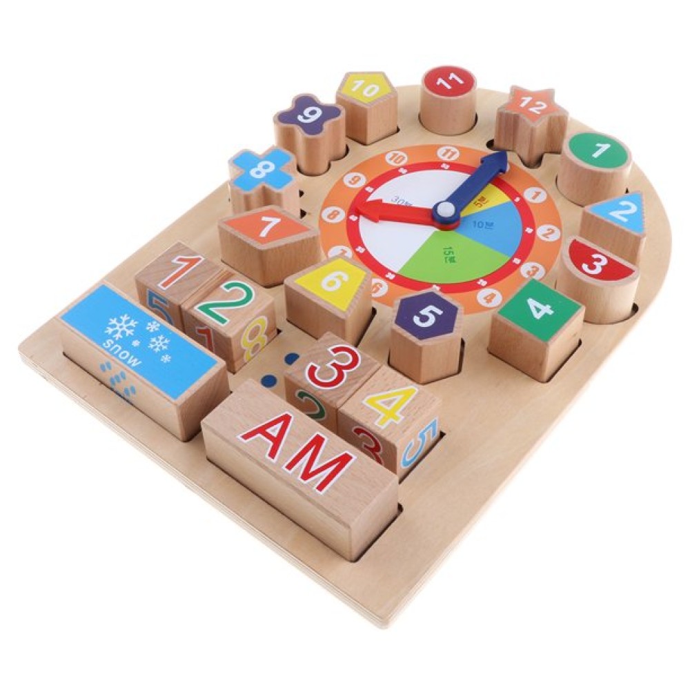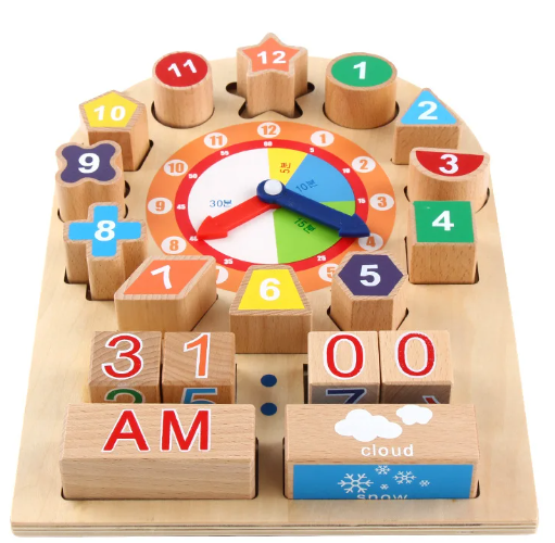 Joc educativ din lemn-Invata ceasul si vremea, 12 luni+