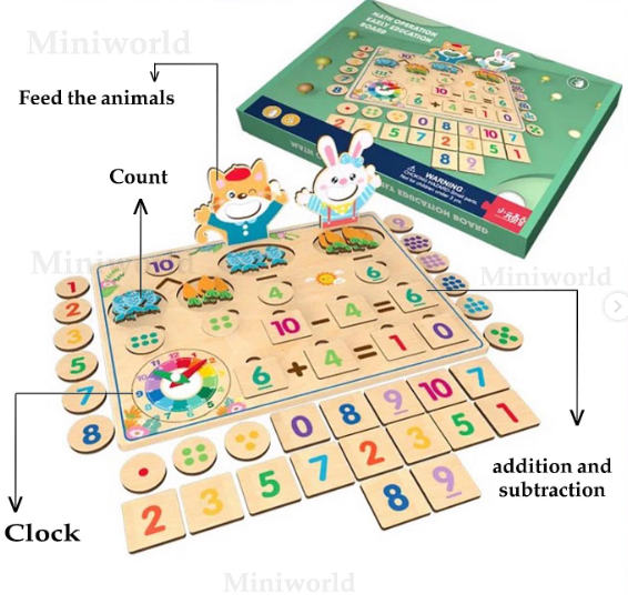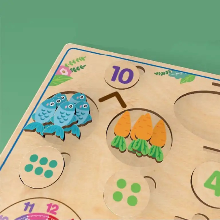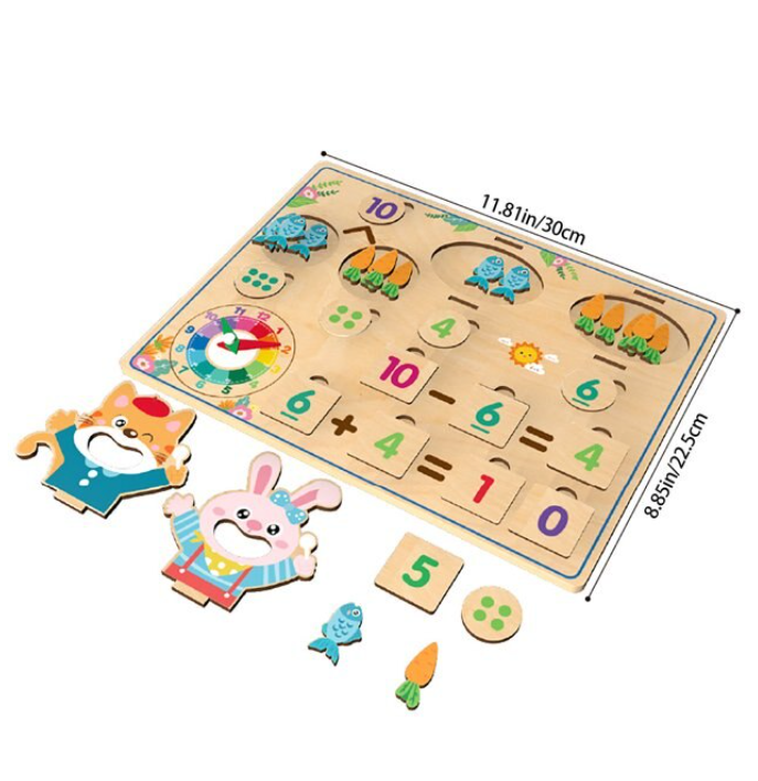 Jocul educativ din lemn pentru matematică, destinat copiilor de la vârsta de 3 ani, este un joc excelent pentru dezvoltarea abilităților matematice de bază, cum ar fi numărarea, adunarea și scăderea. Acest joc din lemn ajută copiii să înțeleagă concepte matematice printr-o metodă interactivă și distractivă.