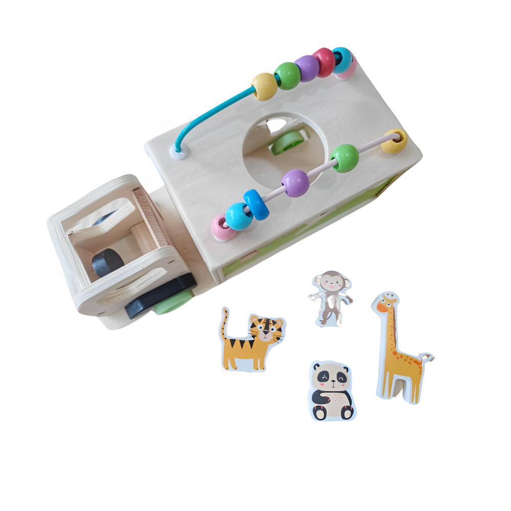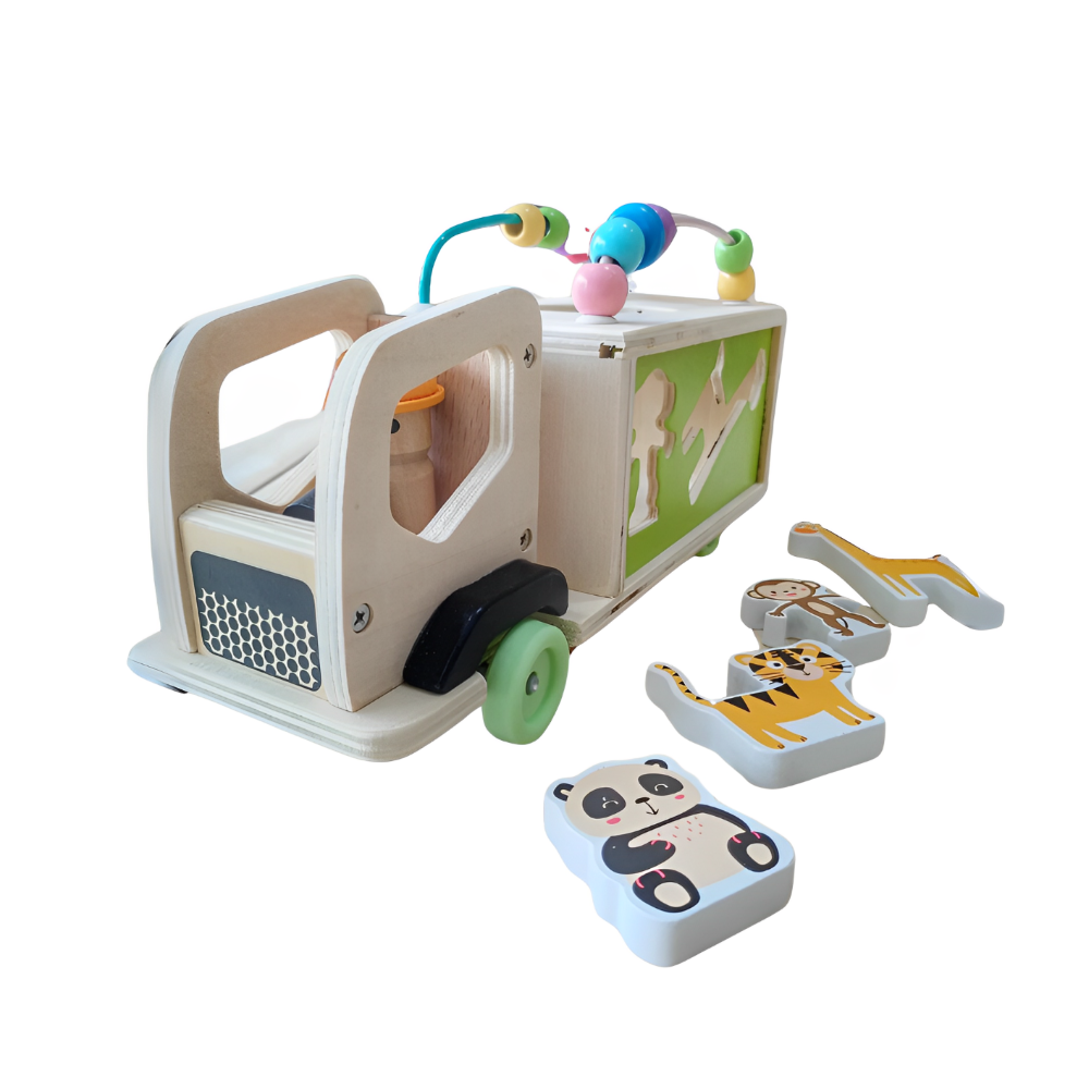 Sortatorul de forme geometrice ( camion cu animale), este o jucarie esentiala pentru dezvoltarea timpurie a copiilor de 3 ani. Sprijinind recunoasterea formelor si culorilor, acest cub stimuleaza gandirea logica si coordonarea vizual-spatiala. E perfect pentru manutele mici, ajutand la dezvoltarea motricitatii fine prin potrivirea formelor in locurile corecte. Fabricat din materiale non-toxice, robuste, jocul educativ este sigur si durabil, fiind ideal pentru orele de joaca si invatare. Fiecare forma geometrica, bine conturata, invita la explorare si experimentare, punand bazele gandirii analitice de la varsta frageda.