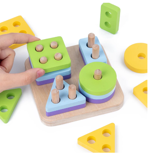 Joc educativ, Sortator forme geometrice pe 4 coloane, 3 ani