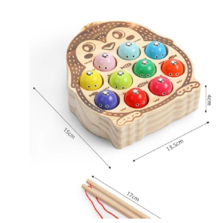 Jocul magnetic de pescuit din lemn cu tematică de pinguin este un joc educativ și distractiv destinat copiilor de la vârsta de 3 ani în sus. Acest joc include o placă din lemn în formă de pinguin, cu 10 peștișori colorați din lemn, fiecare având un mic magnet în partea de sus. De asemenea, setul include și două undițe din lemn cu un magnet la capăt, pentru ca cei mici să „pescuiască” peștișorii din placa de joc.