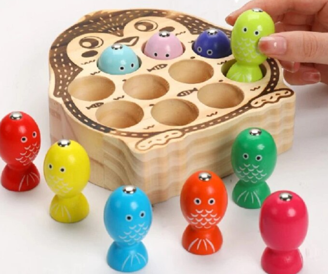 Joc magnetic de pescuit, din lemn, Pisica, 3 ani