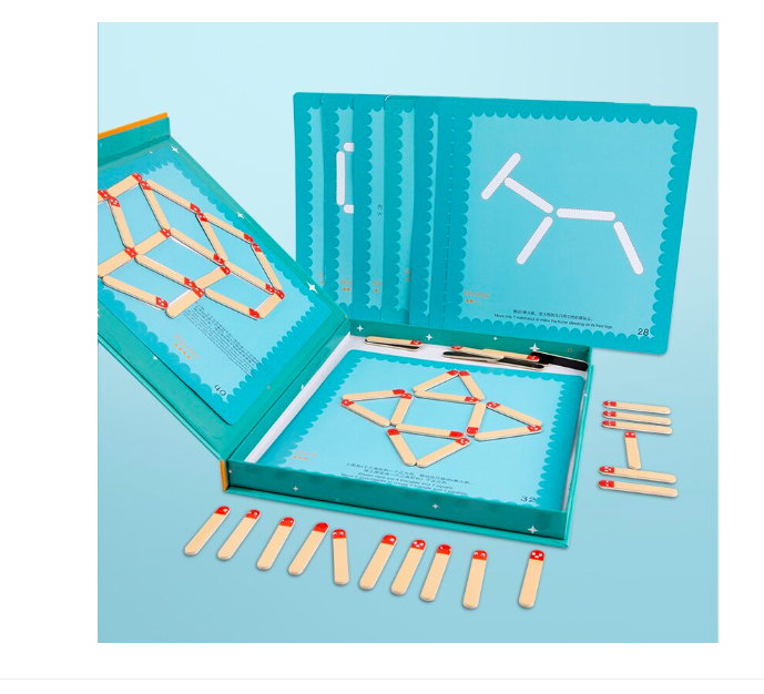Jocul este alcatuit dintr-o coperta ce are rol de suport, aceasta fiind magnetica, 15 de carduri cu modele diferite si 70 de betisoare de chibrituri magnetice si o brosura cu solutiile provocarilor acestui joc.